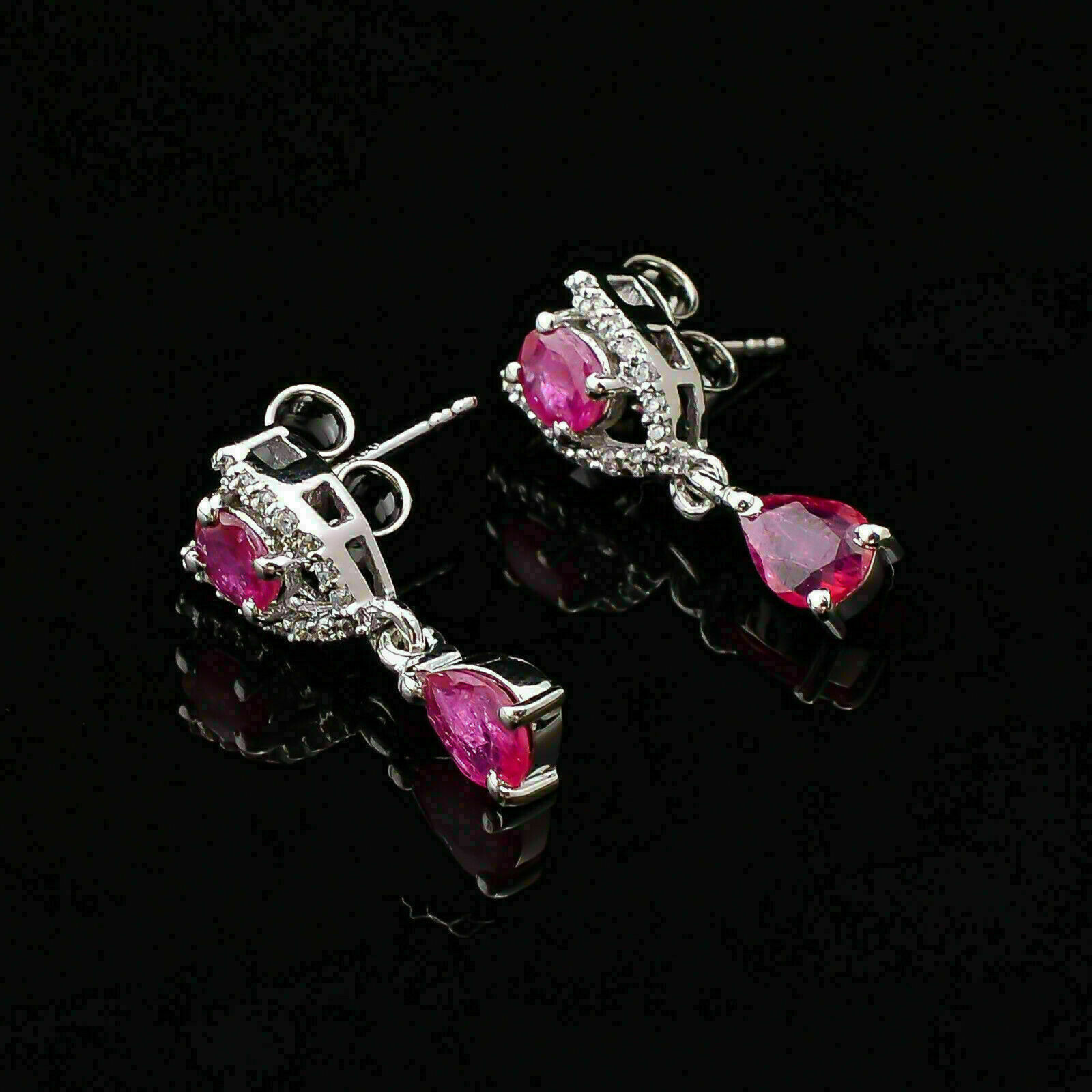 Orecchini pendenti e pendenti con zaffiro rosa con taglio a pera da 3 ct e...