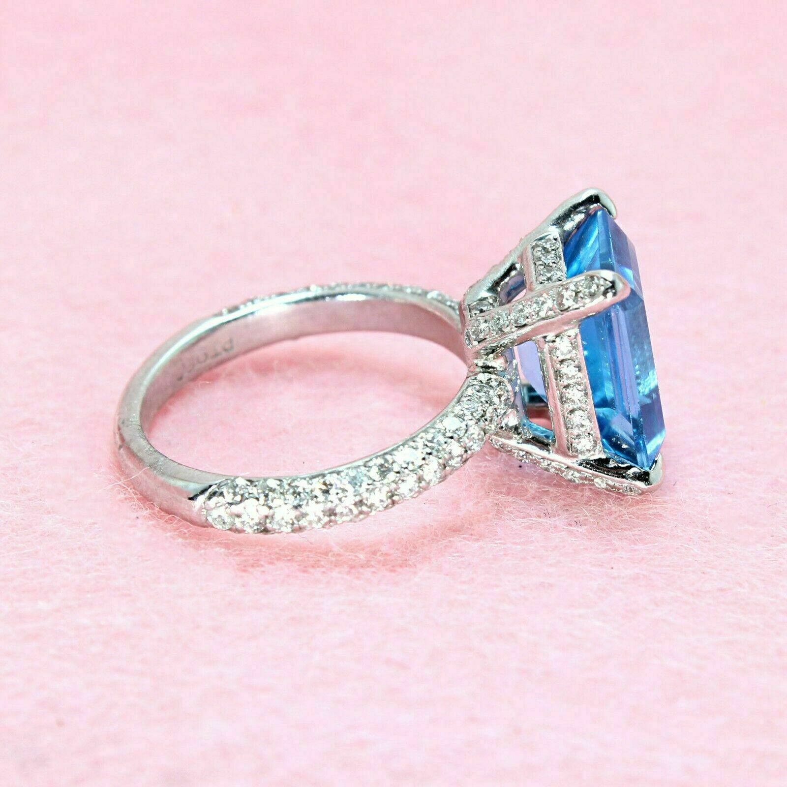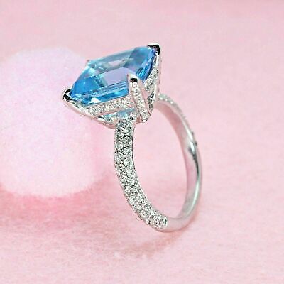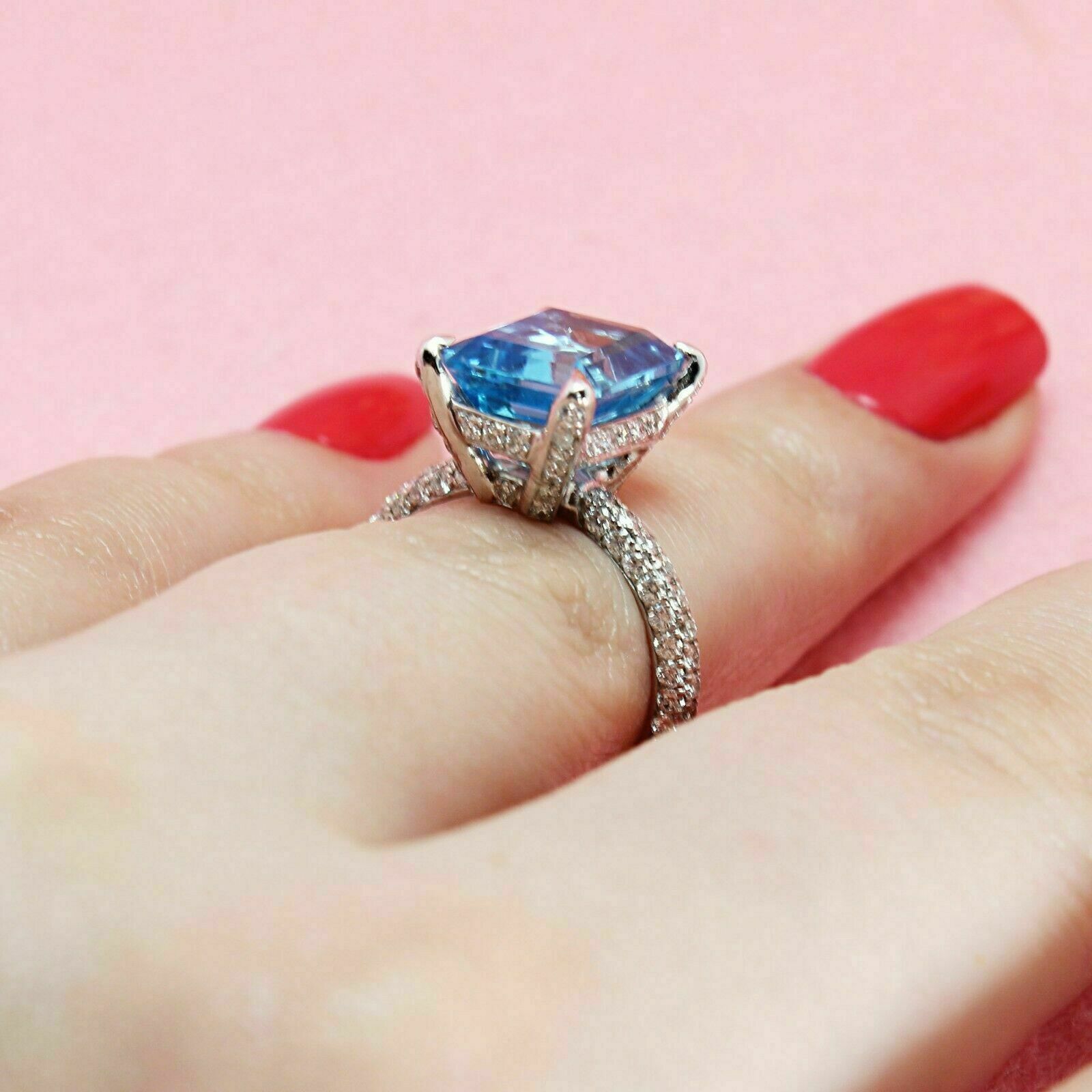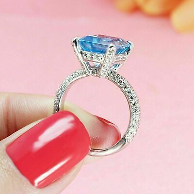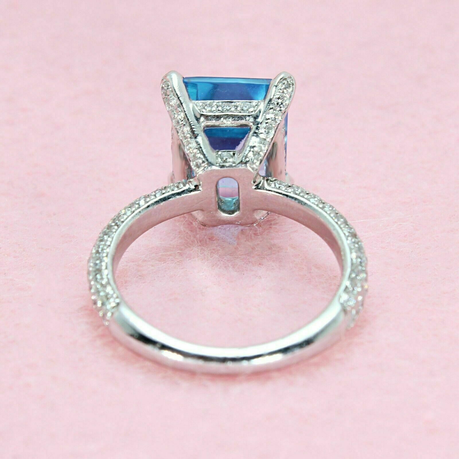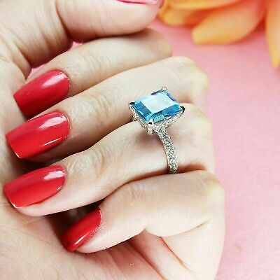 Bague de fiançailles solitaire topaze bleue taille émeraude 2,50 ct en...