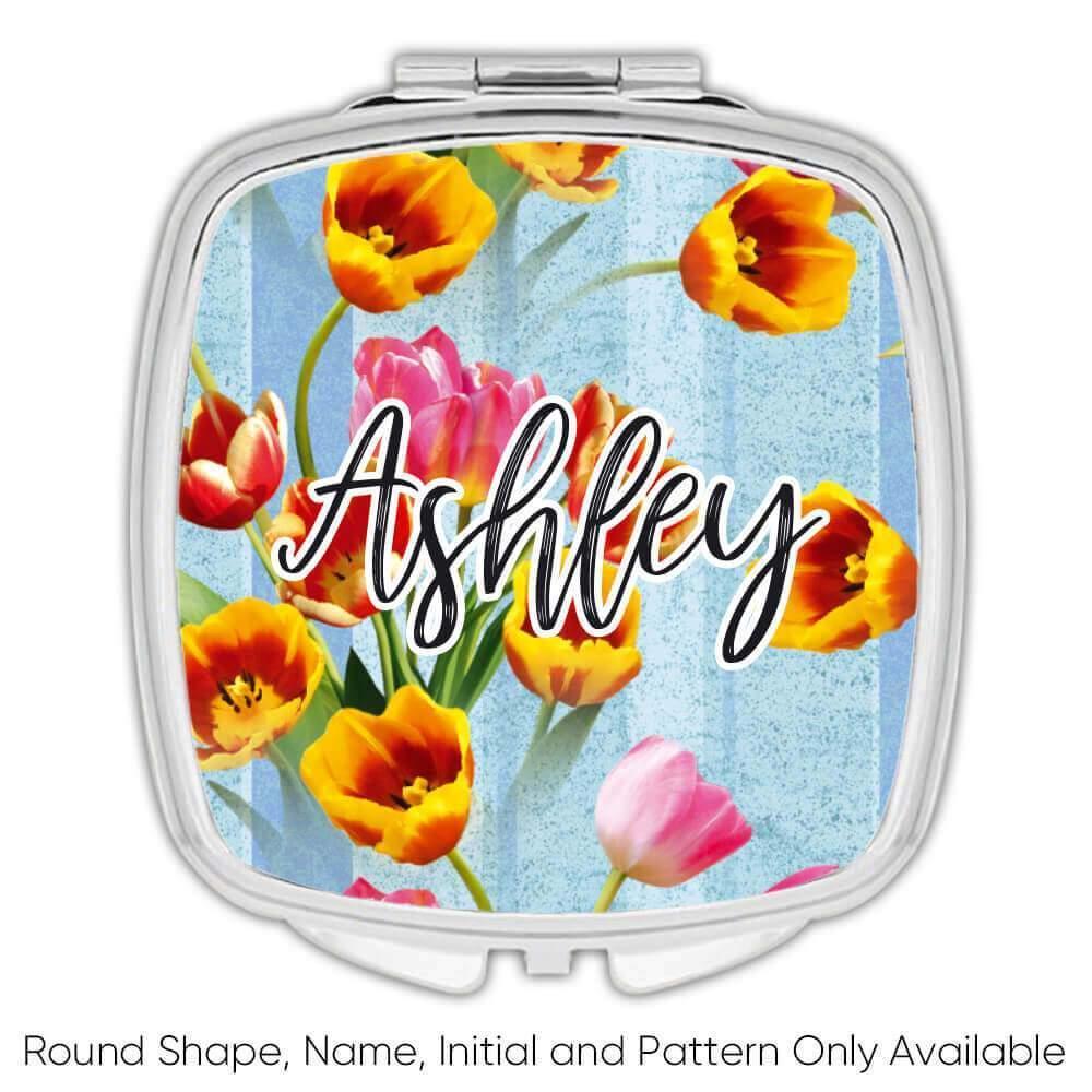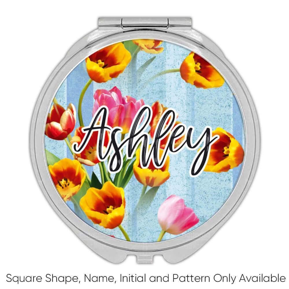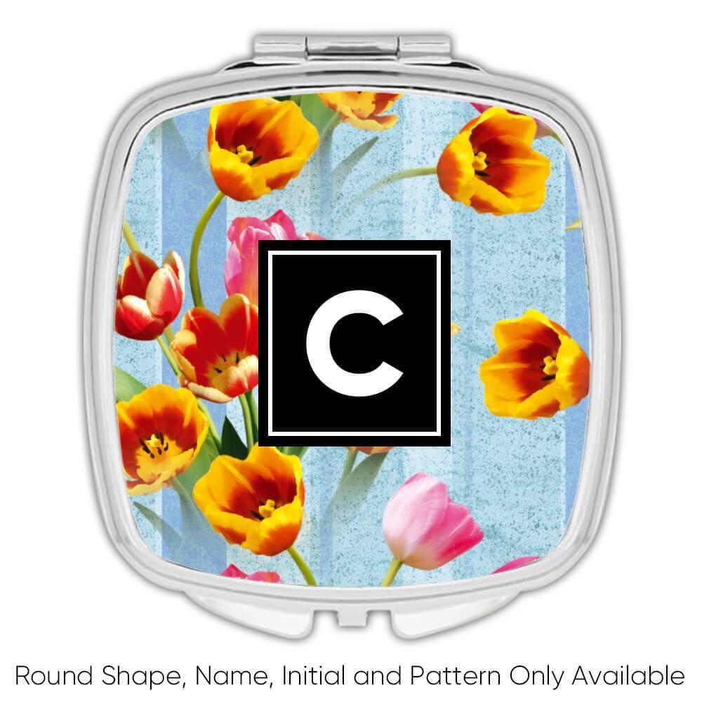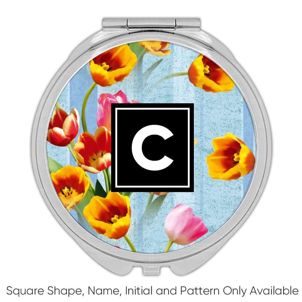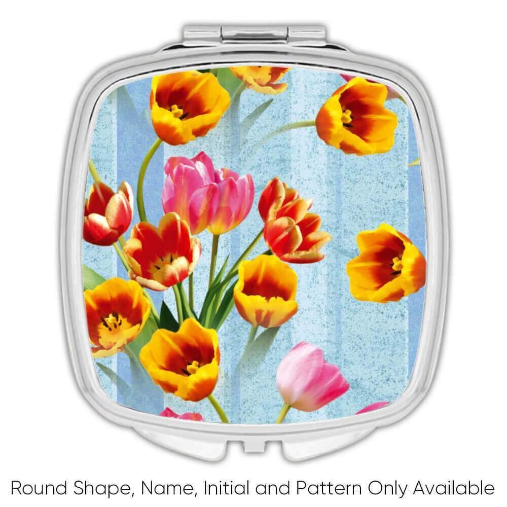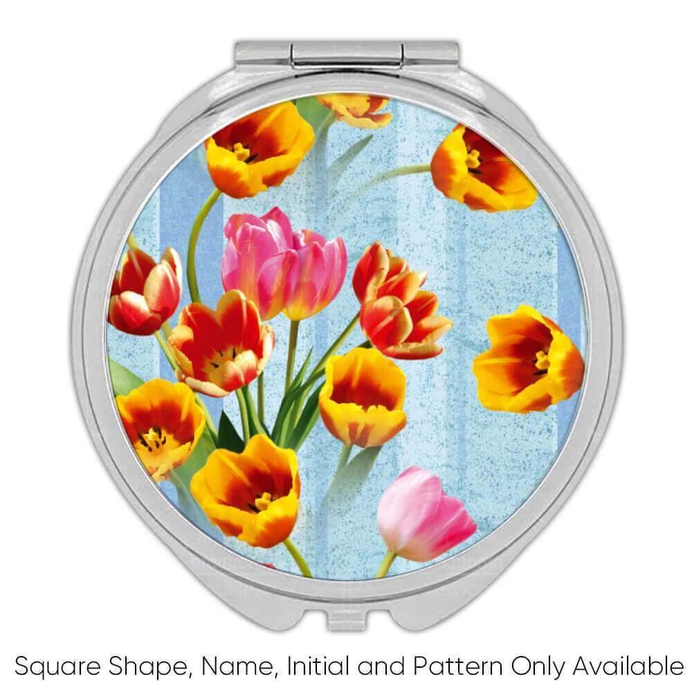 Tulips Bouquet : Gift Compact Mirror Spring Floral Pattern Female Day Rustic Ann