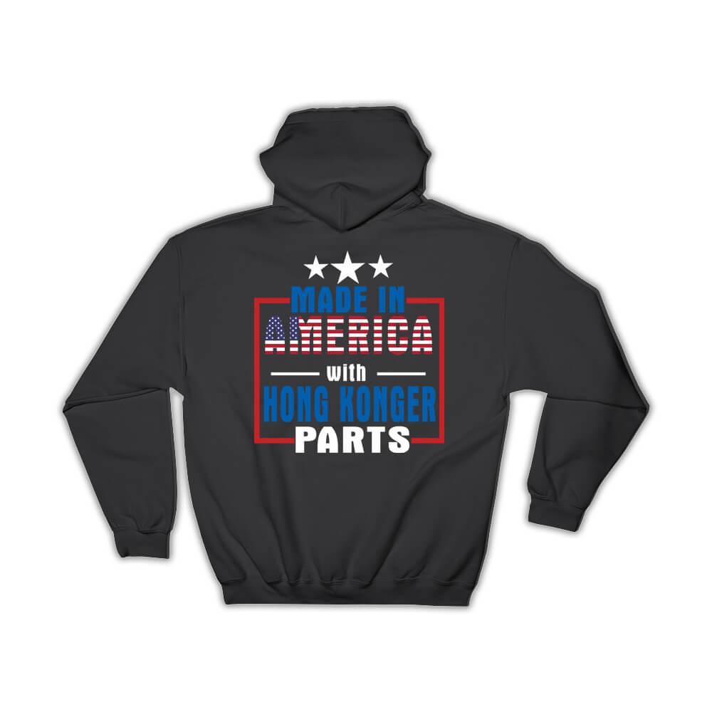 Made in America with Hong Konger Parts : Gift Hoodie Expat Country USA Hong Kong