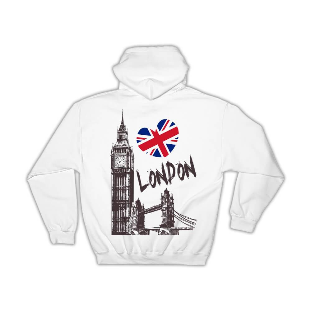 ENGLAND London : Gift Hoodie Country Flag British UK Bridge Big Ben Souvenir Hea