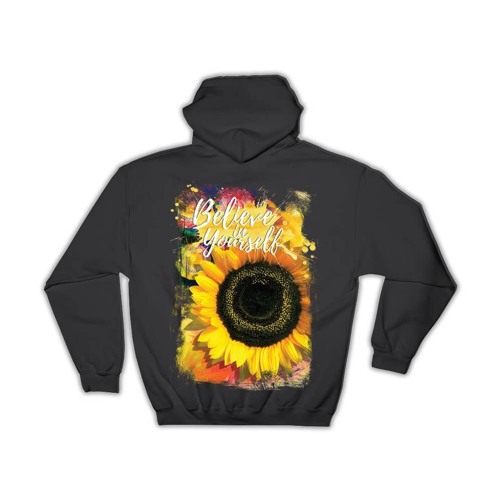 Sunflower Believe in Yourself : Gift Hoodie Flower Floral Yellow Quote Inspirati