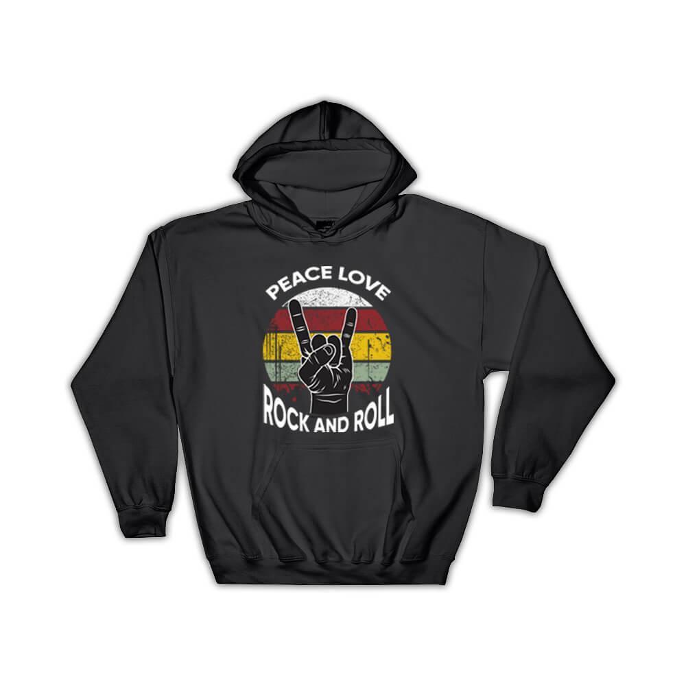 Peace Love Rock And Roll Wall Art Print : Gift Hoodie Music Lover Retro Hand Sig
