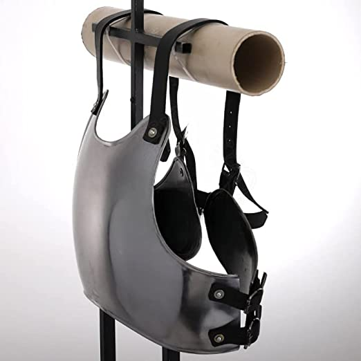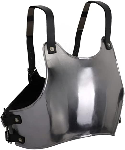 Tailored to the female form, the Blackened Mina Chest Armour offers a great look for shieldmaidens, lady knights, and warrior princesses. The steel armour decorative rivets along the edges. Shoulder straps connect the womens breastplate, allowing size adjustments. Please note that the steel breastplate is not adjustable, which may restrict who the breastplate will comfortably fit. The chest armour cuts off at the midriff, allowing the torso to rotate and move with relative freedom. Be sure to check out our other Mina-style armour when creating your next outfit for LARP, re-enactments, or the Renaissance fair! Crafted from 18 gauge steel