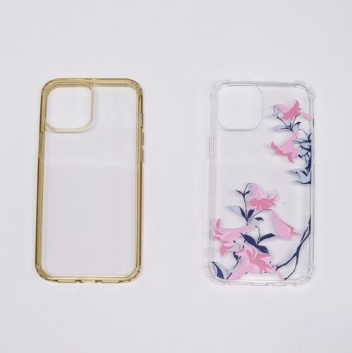 2 New iPhone 12 Pro Max Phone Cases - Clear Gold Lily - Shock Absorption.
