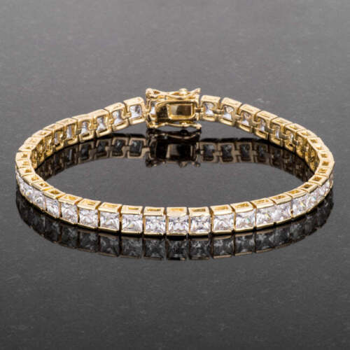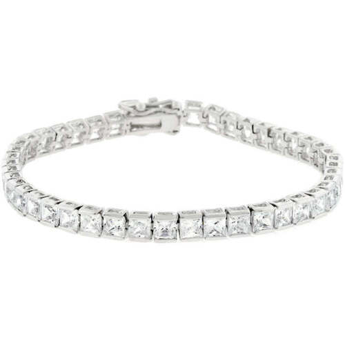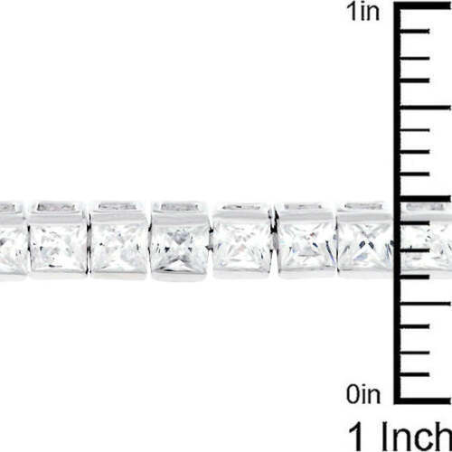 Silvertone Rhodium or Gold Plated Brass 4mm Square CZ 7.25" Tennis Bracelet