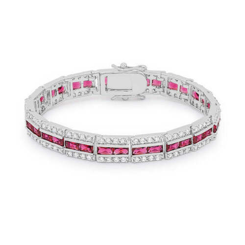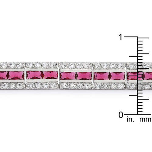 Precious Stars Silvertone Red Radiant-cut Cubic Zirconia Bracelet