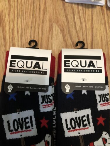 EQUAL Stand For Something 2 Pair Love Justice Crew Socks Unisex New.