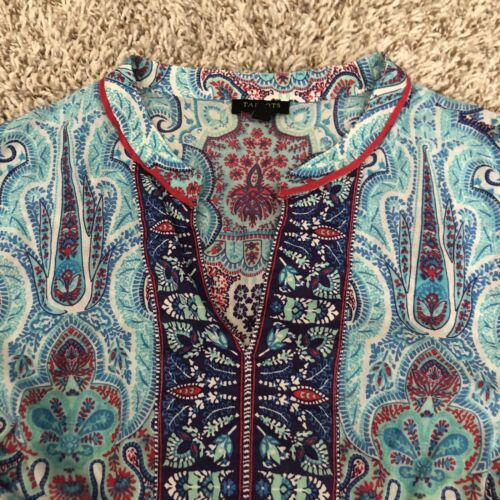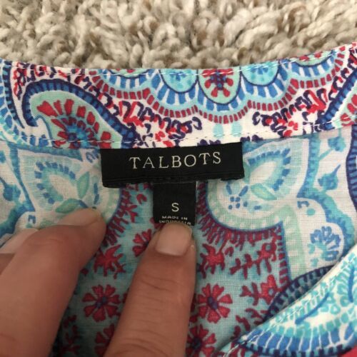 Talbots blouse womens size small Long sleeve blue paisley shirt.