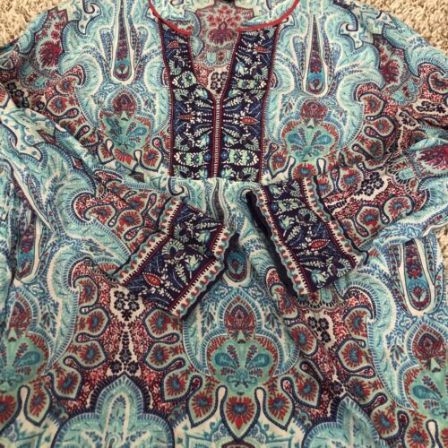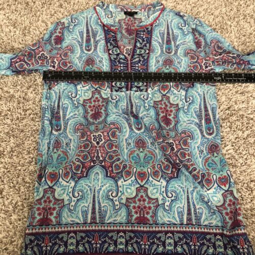 Talbots blouse womens size small Long sleeve blue paisley shirt