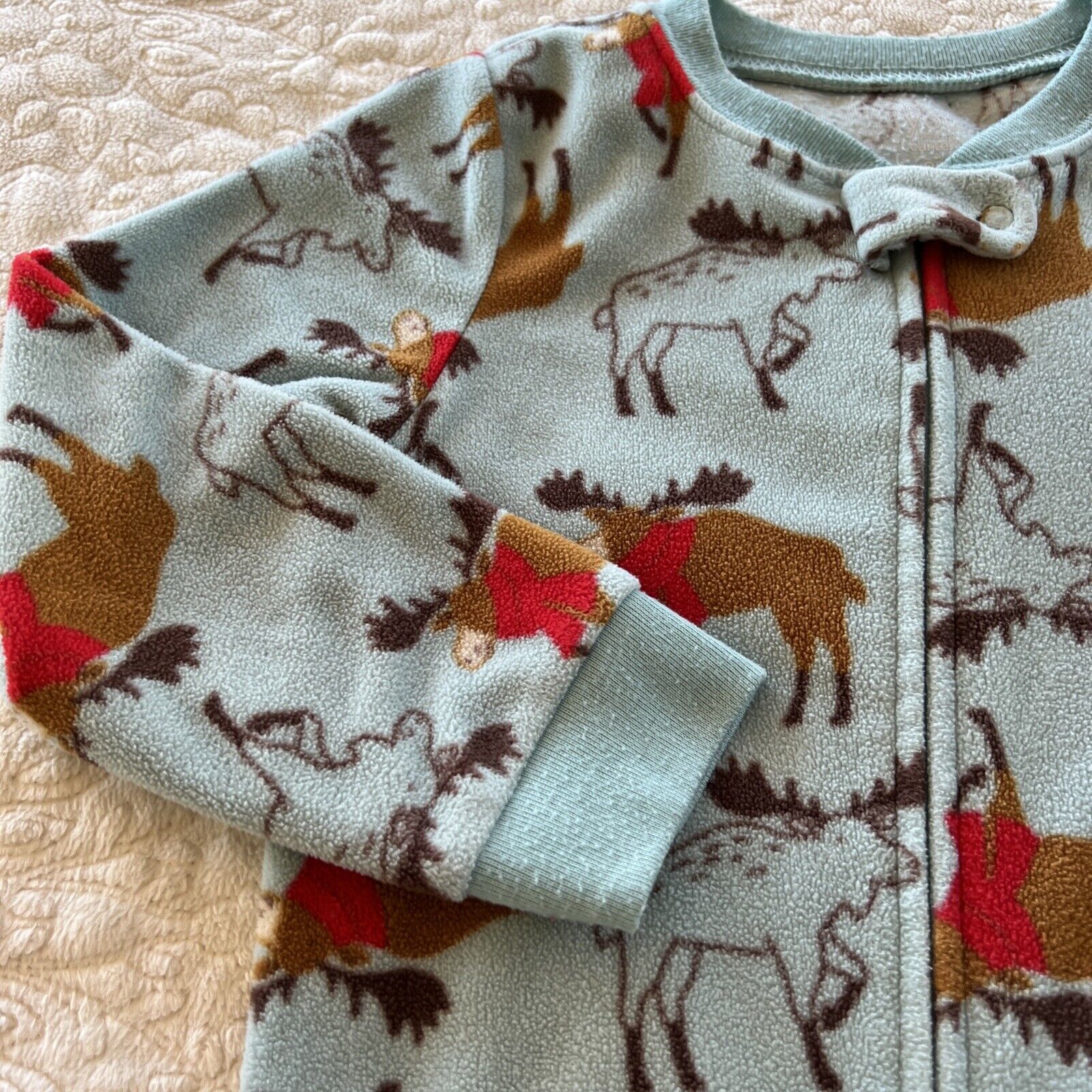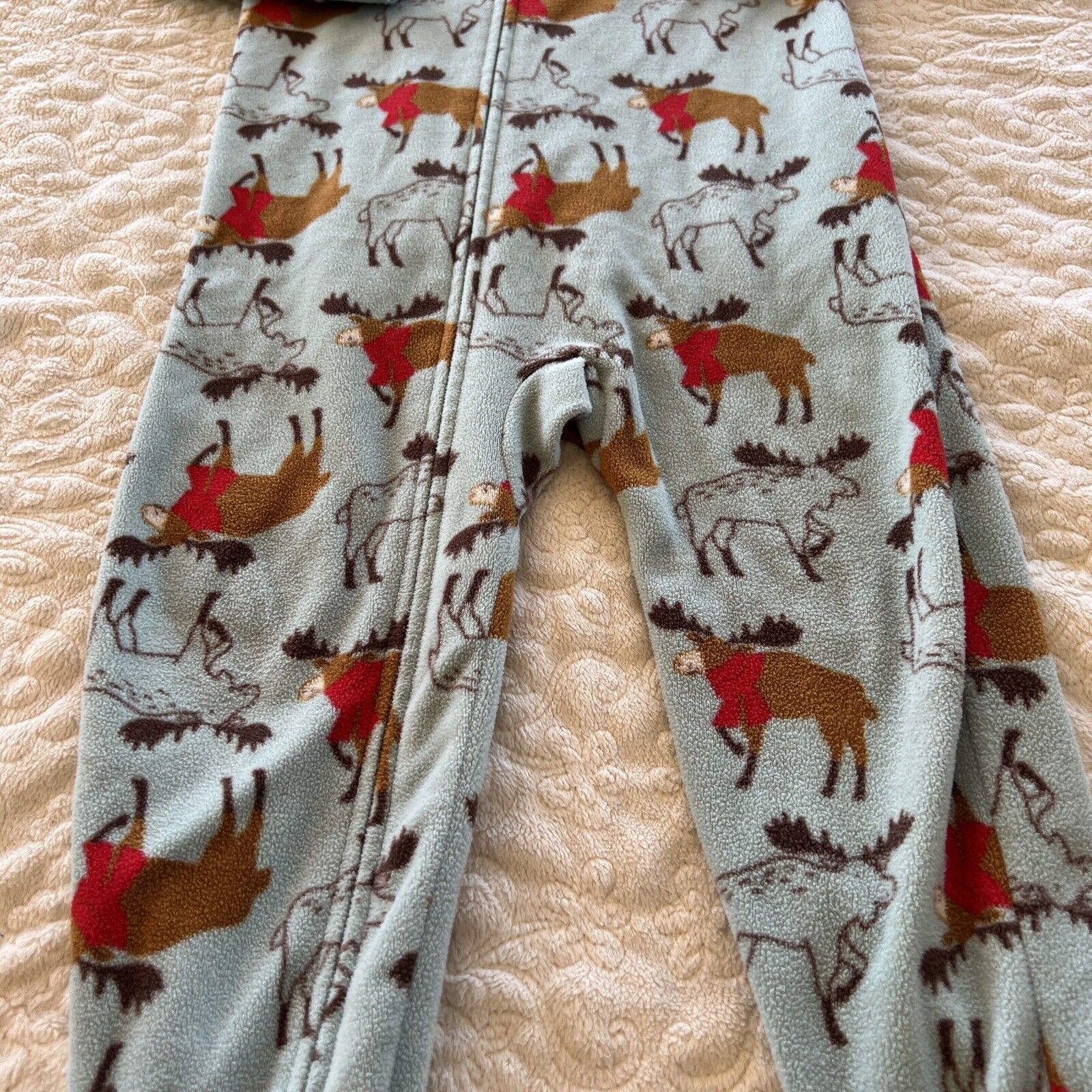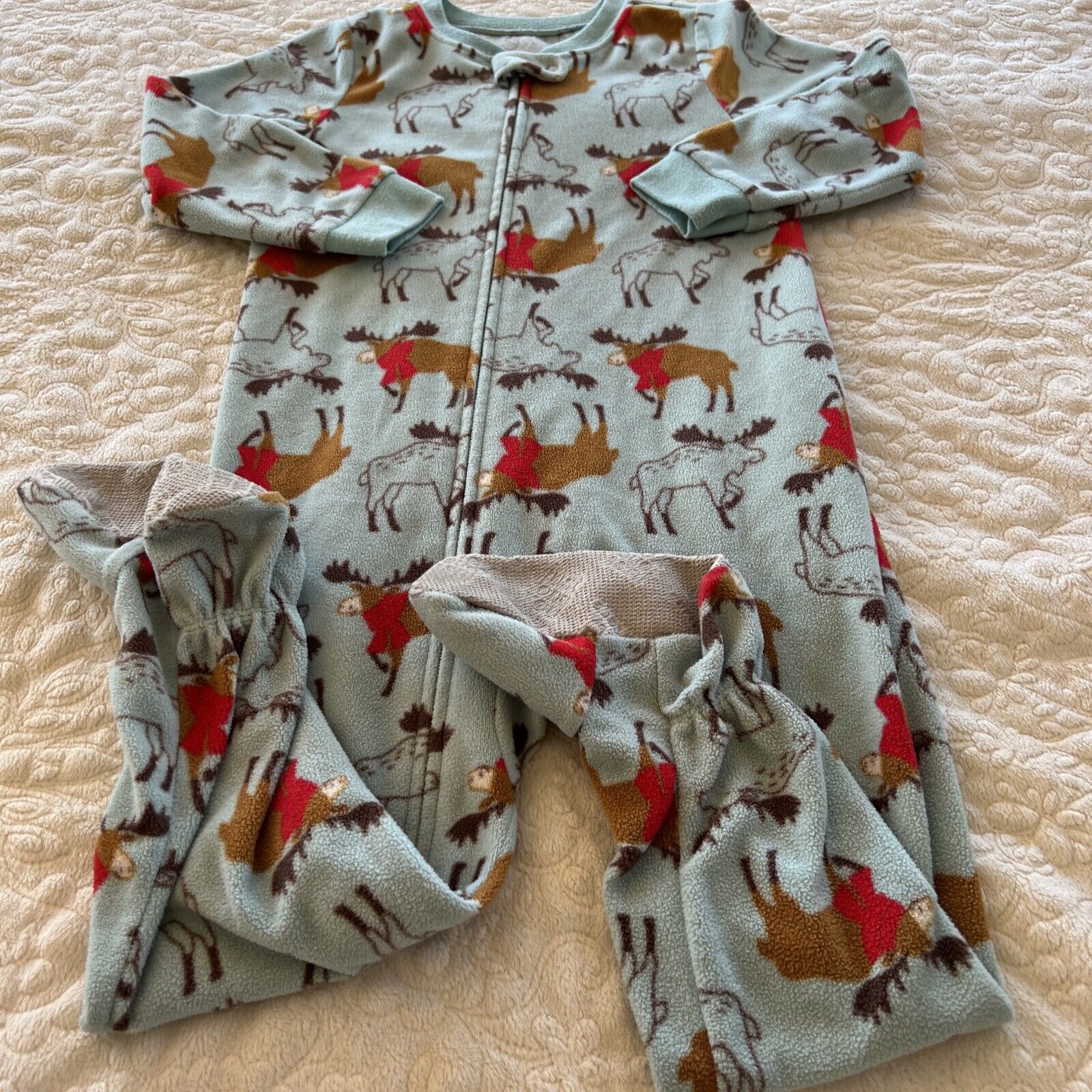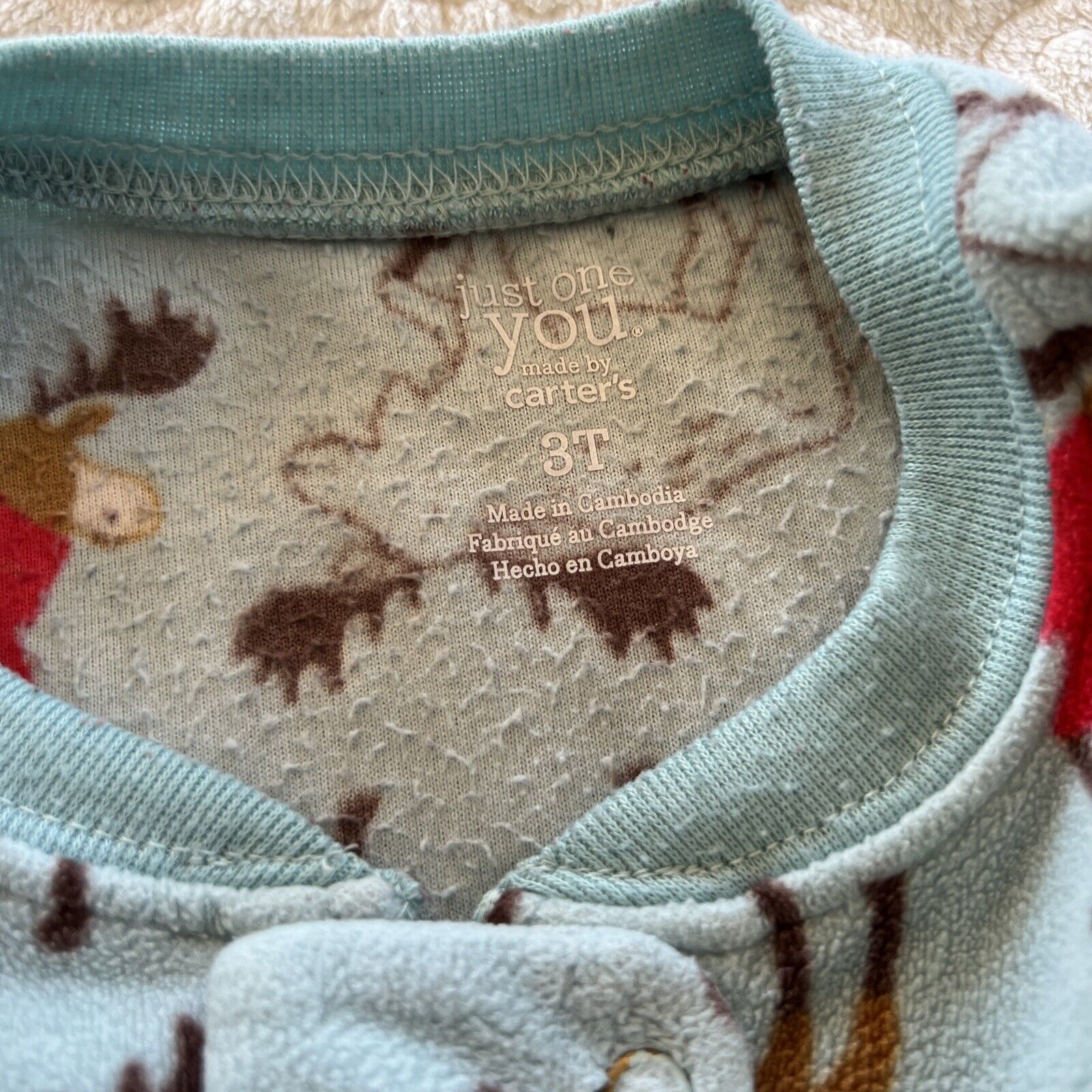 Just One You Boys Blue Brown Moose Red Scarf Fleece Long Sleeve Pajamas 3T.