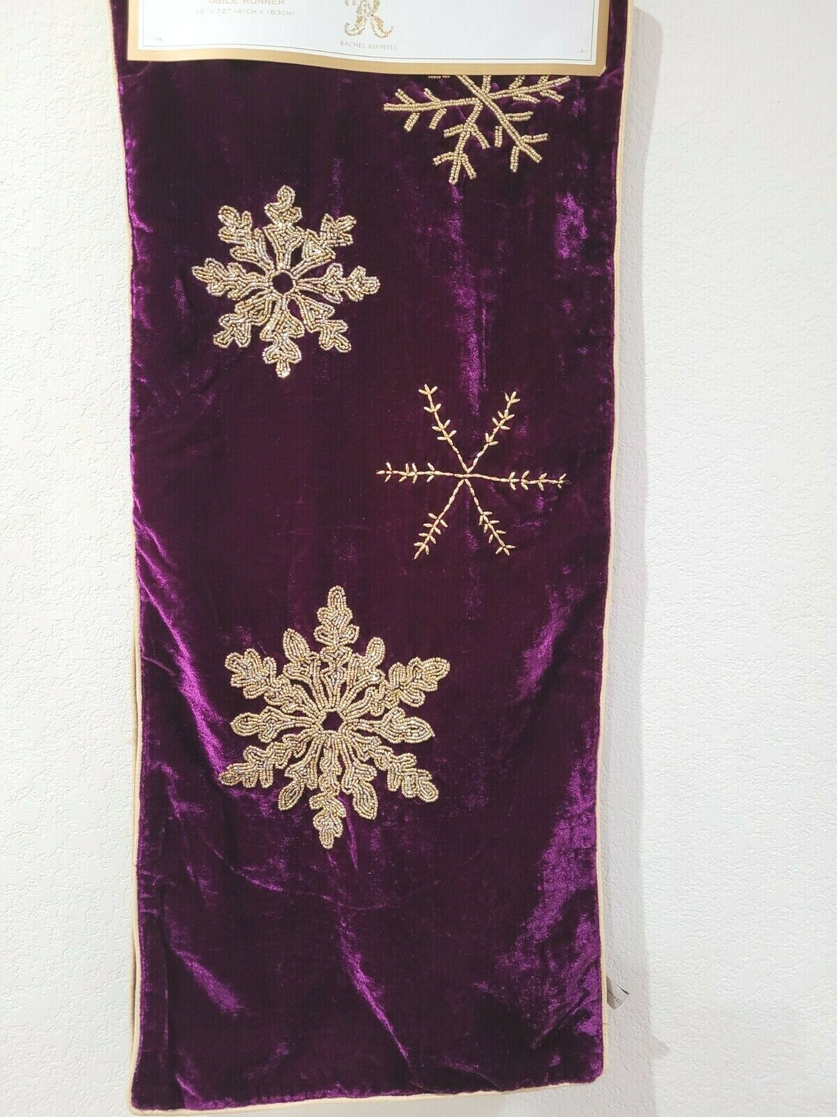 Christmas Rachel Ashwell Velvet Purple Gold Snowflake Table Runner 13" x 72"