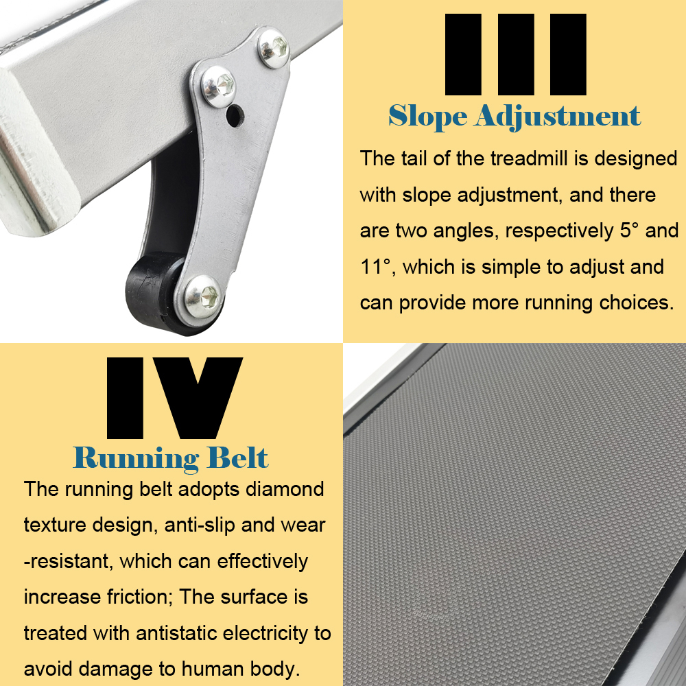 easily folded or unfolded to move the treadmill; Two rubber pads
