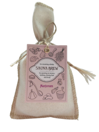 Sauna brews are designated for steaming sauna whisks, pouring the brew on rocks, bathing and pouring on the body and hair. Before using your sauna, take the sachet with the dried herb and put it into a bucket (pan or pot). Pour into it 2-5 liters of boiled water, cover, and wait 15-20 minutes. If you want to have the stronger scent, you should squeeze the sachet with your hand. You can pour the brew on rocks and breathe the natural aromas in. In addition, you can pour this brew on your body or hair. The sauna brew can be used in sauna twice, but first it must be dried.