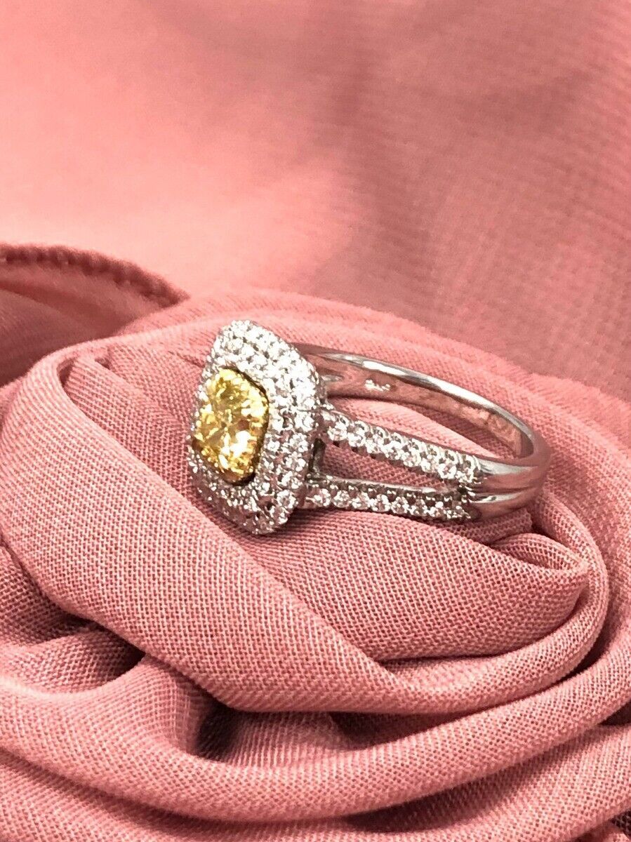 GIA Certified 1.62Ct Cushion Natural Yellow Diamond Ring 18k Gold