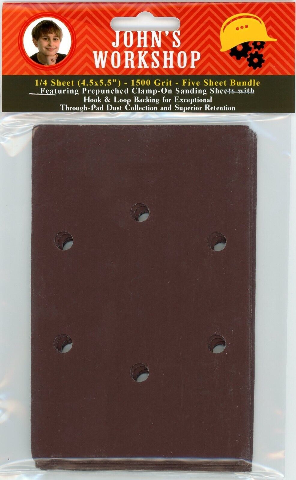 Drill Master 40070 - 1/4 Sheet - 1500 Grit - PrePunched - 5 Sandpaper Bundle