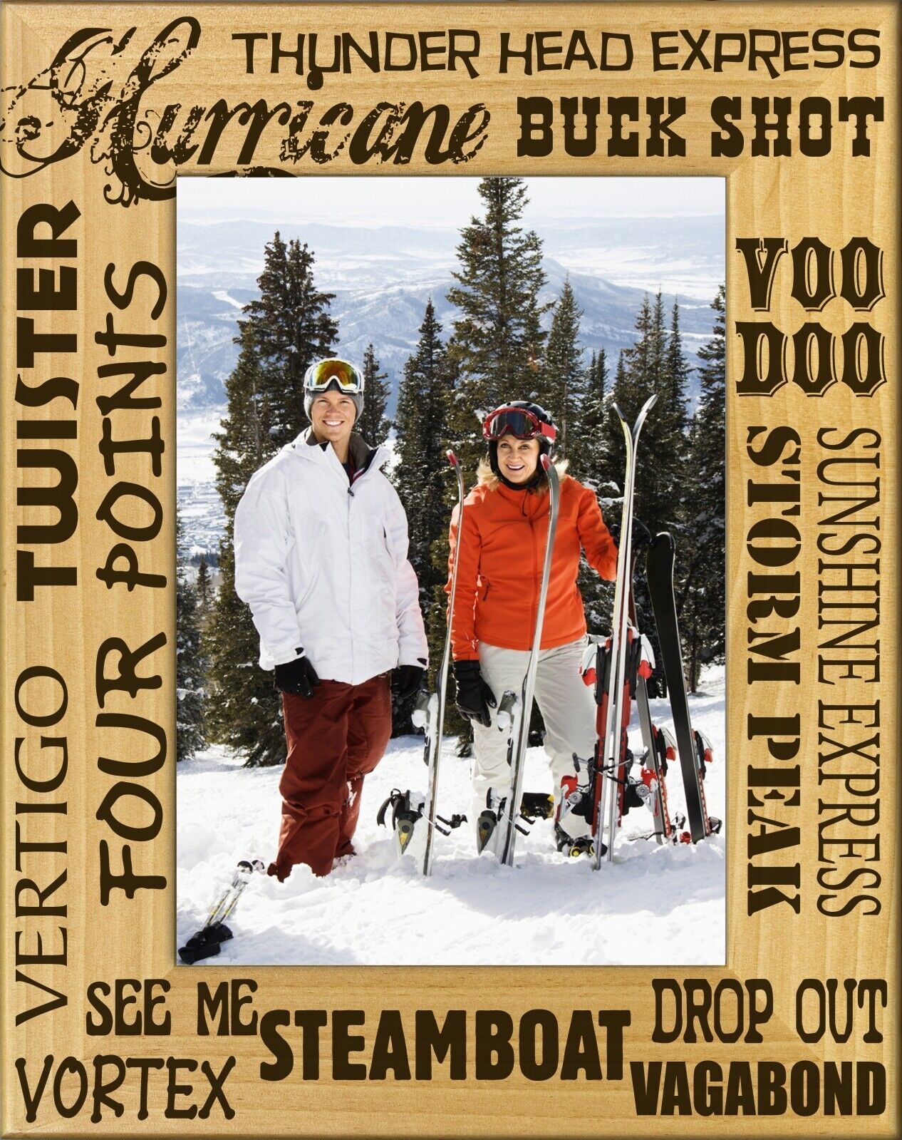 Steamboat Colorado Ski Runs Laser Engraved Wood Picture Frame Portrait (4 x 6)