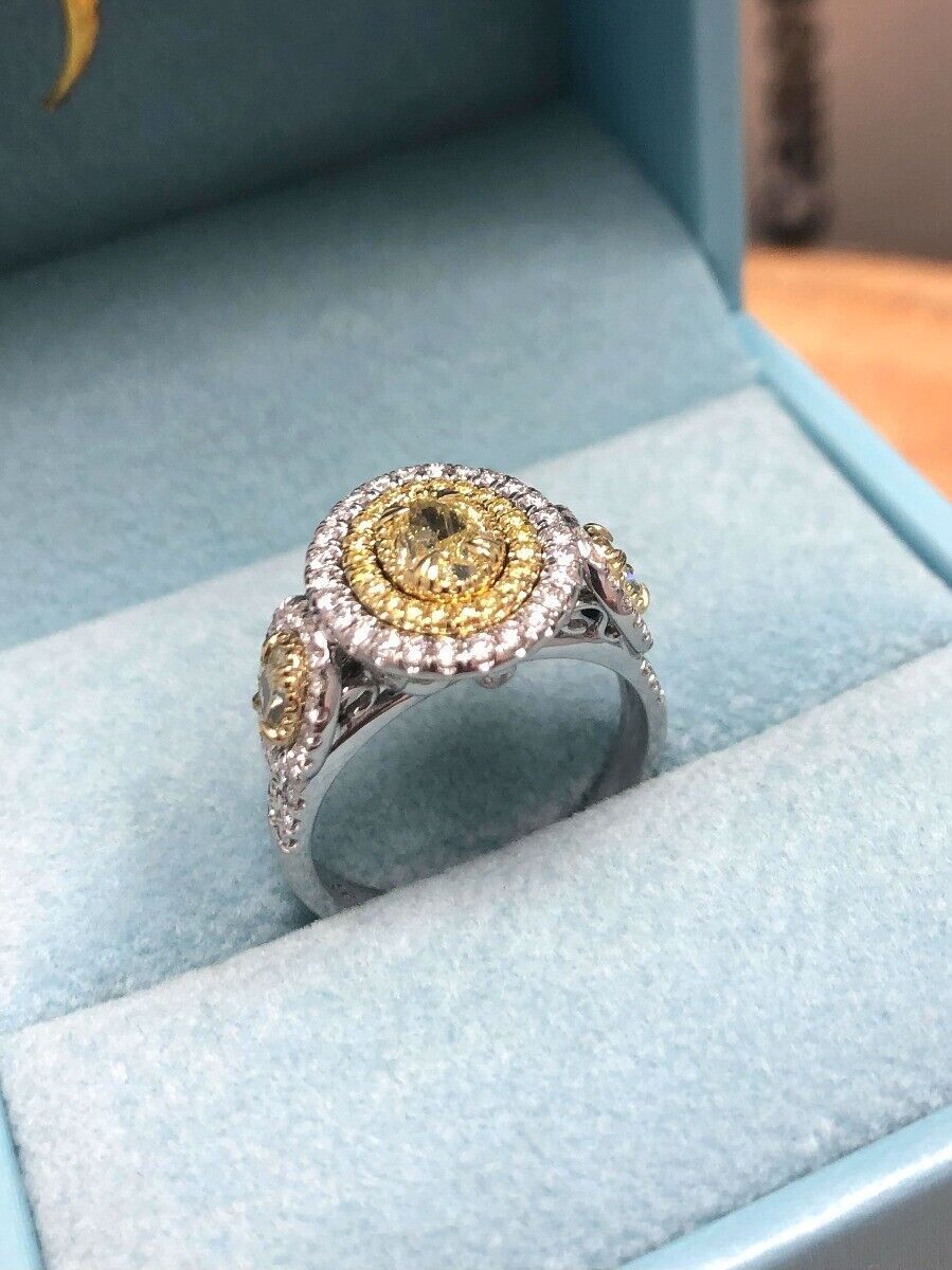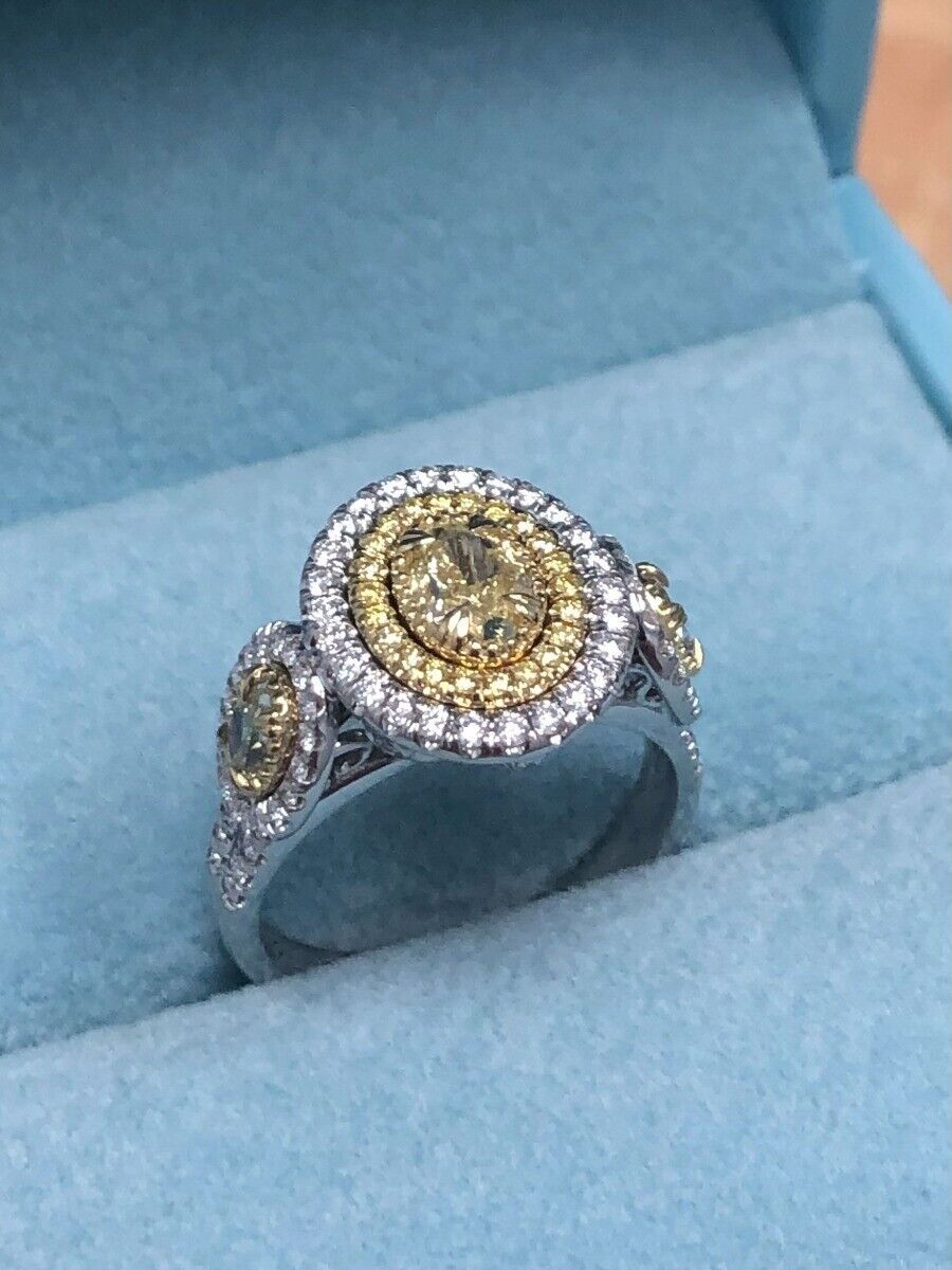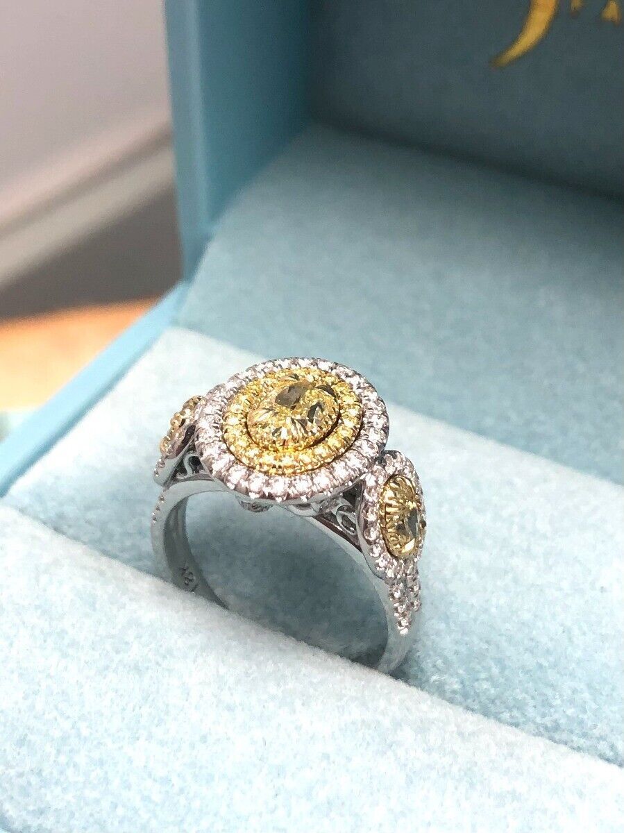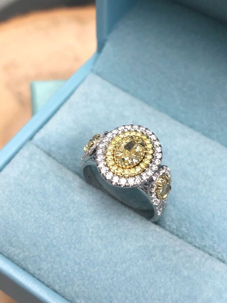 GIA 1.86 CT Oval Natural Fancy Yellow Diamond Ring 18k White Gold