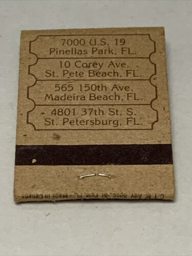 Vintage Matchbook Cover Leverocks Famous Fresh Seafood ST Pete Beach, FL gmg