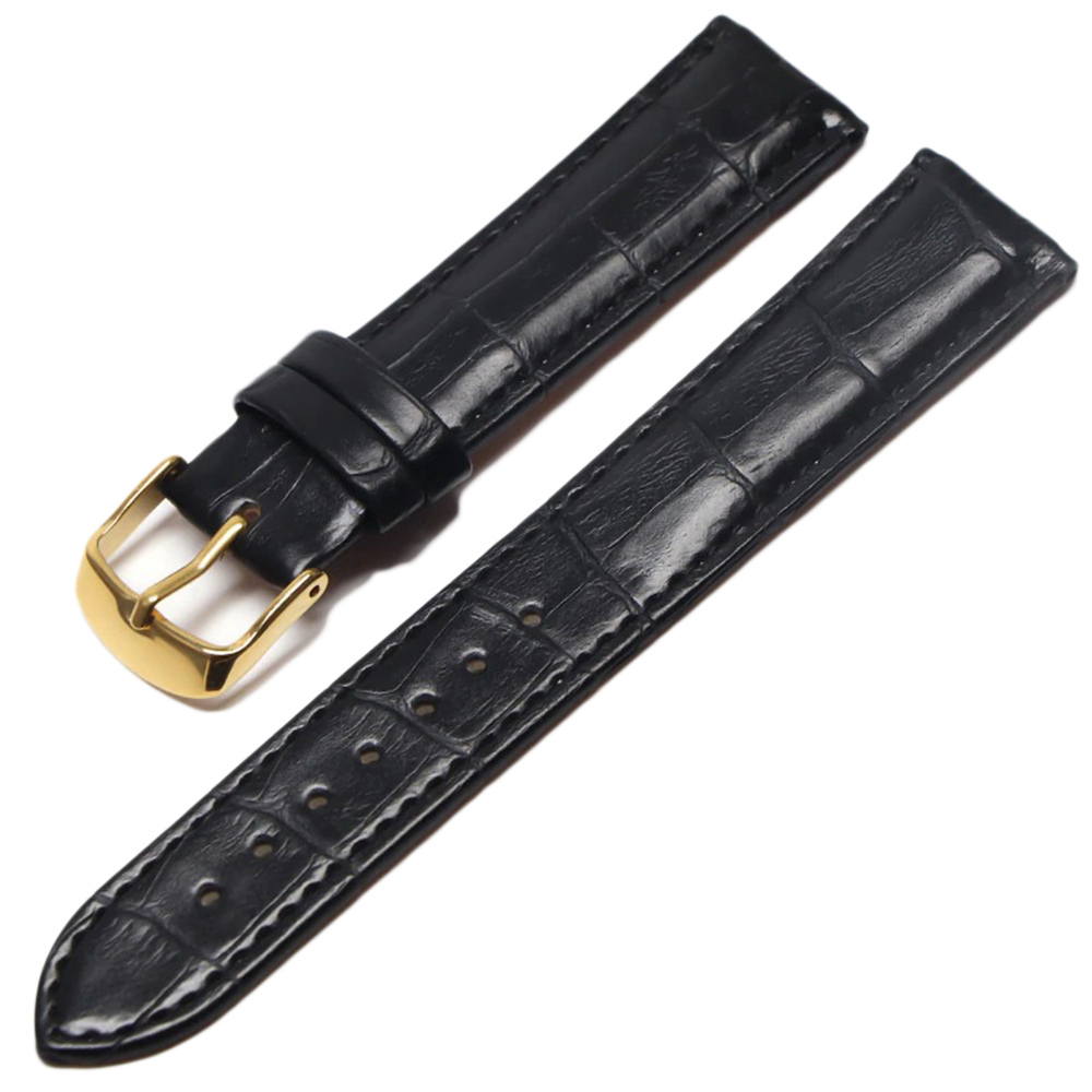 18mm 20mm 22mm 24mm Genuine Leather Black Watch Band Strap With Yellow Buckle