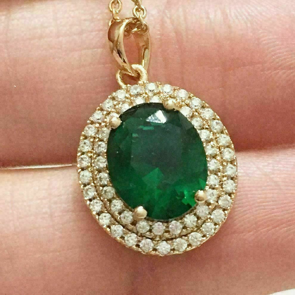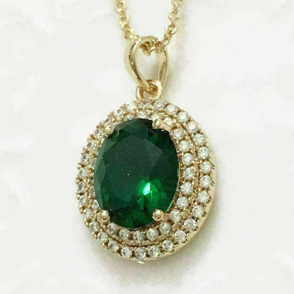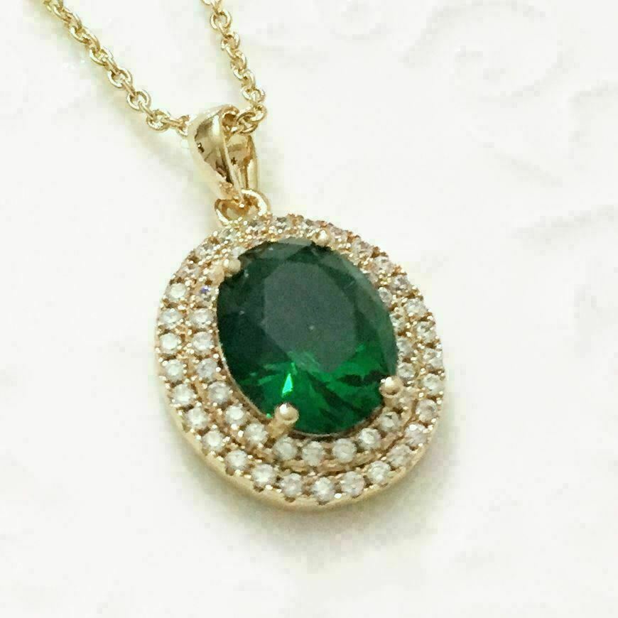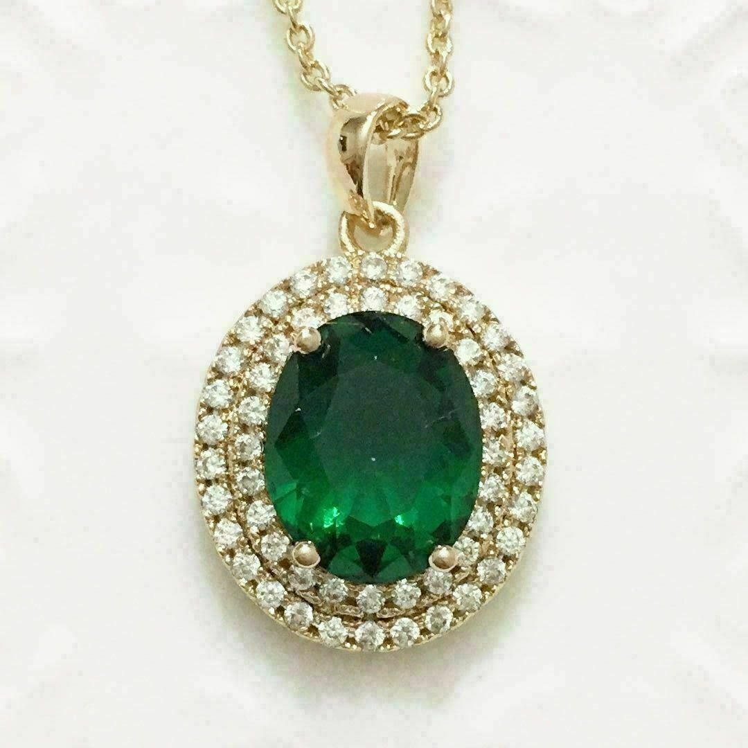Collana con ciondolo a forma di alone con diamante verde smeraldo taglio...