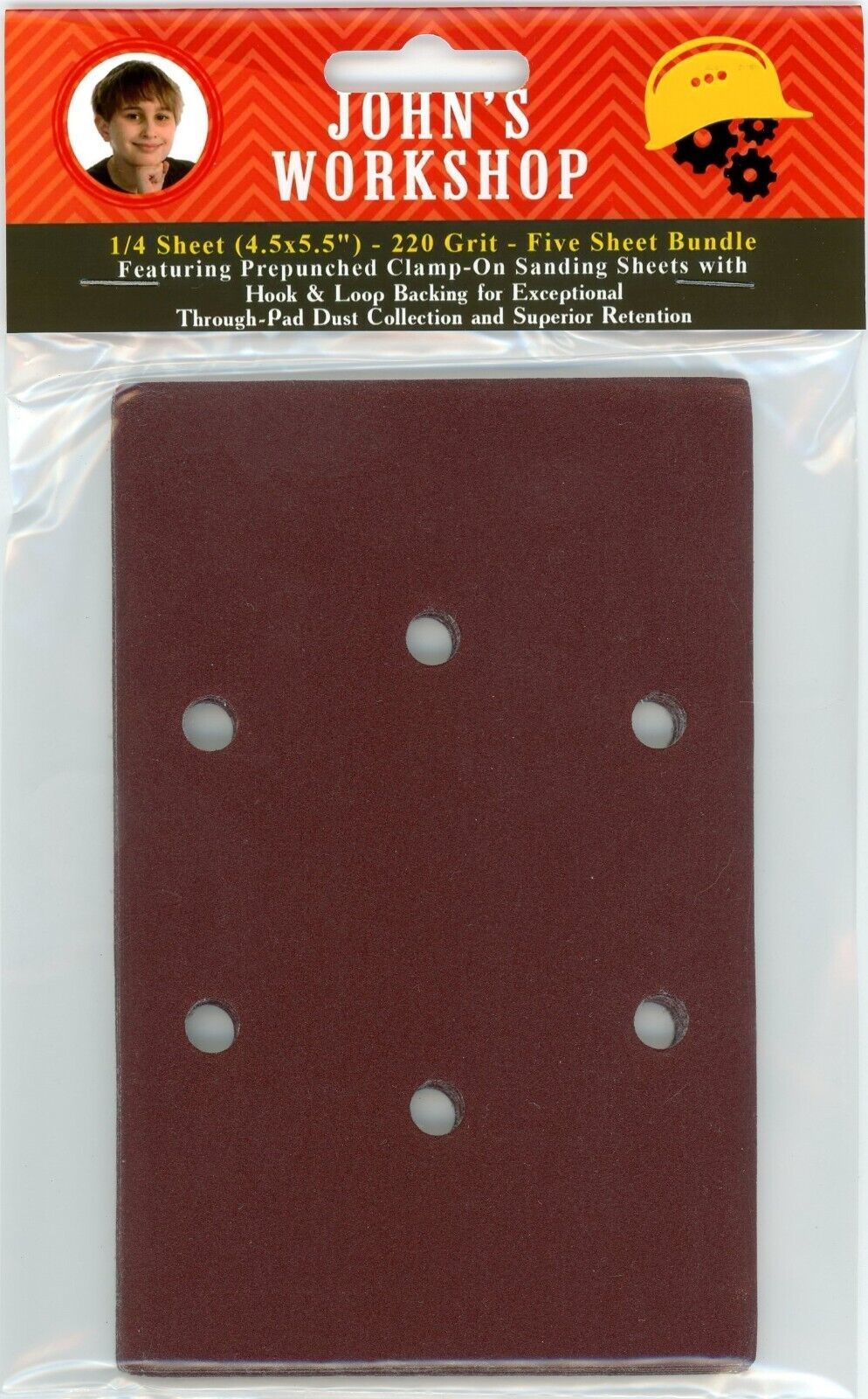 Drill Master 40070 - 1/4 Sheet - 220 Grit - PrePunched - 5 Sandpaper Bundle