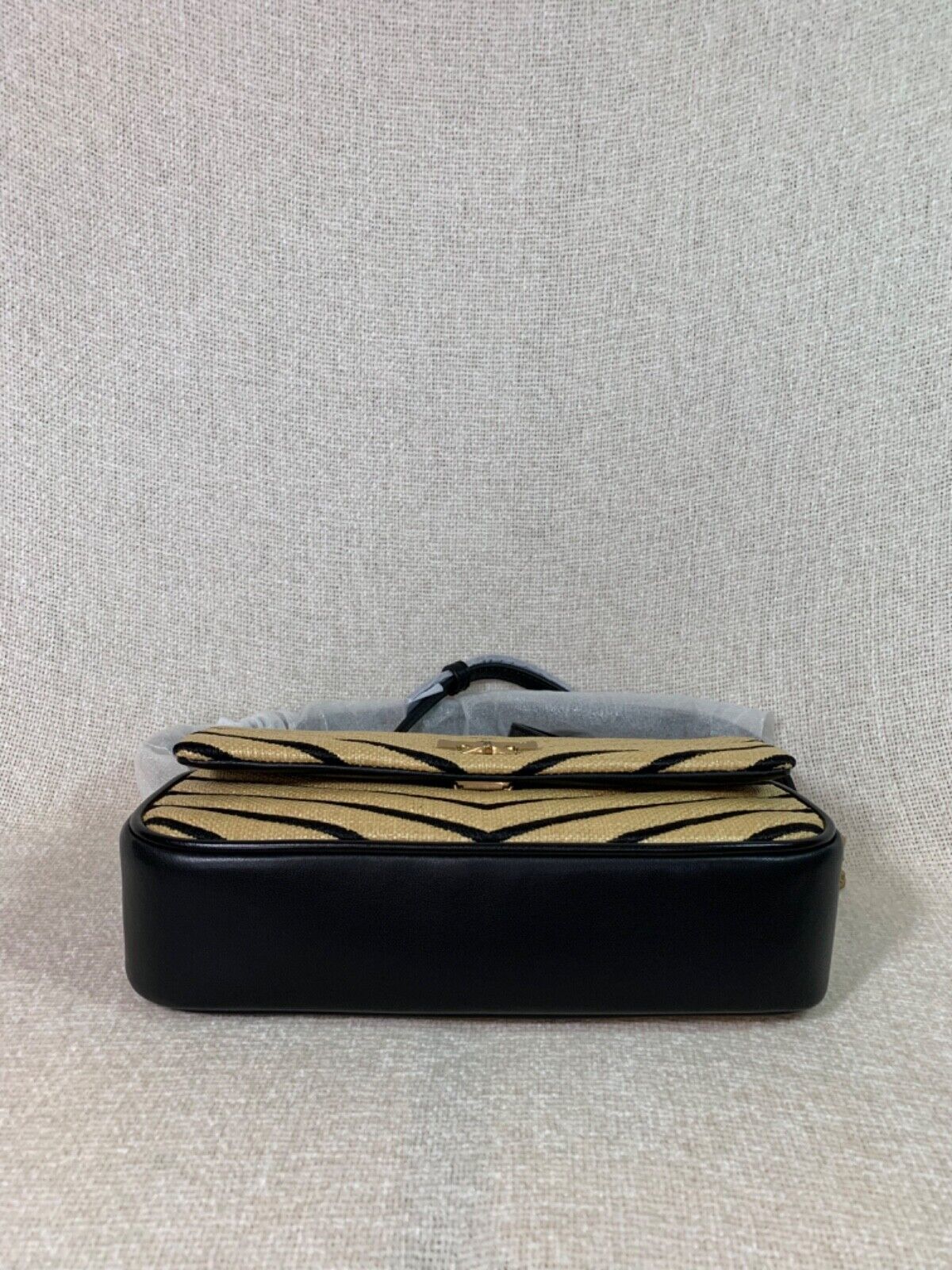 This bag is made of soft straw and black genuine leather.