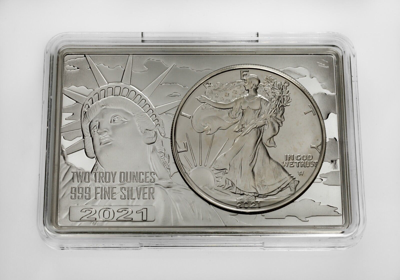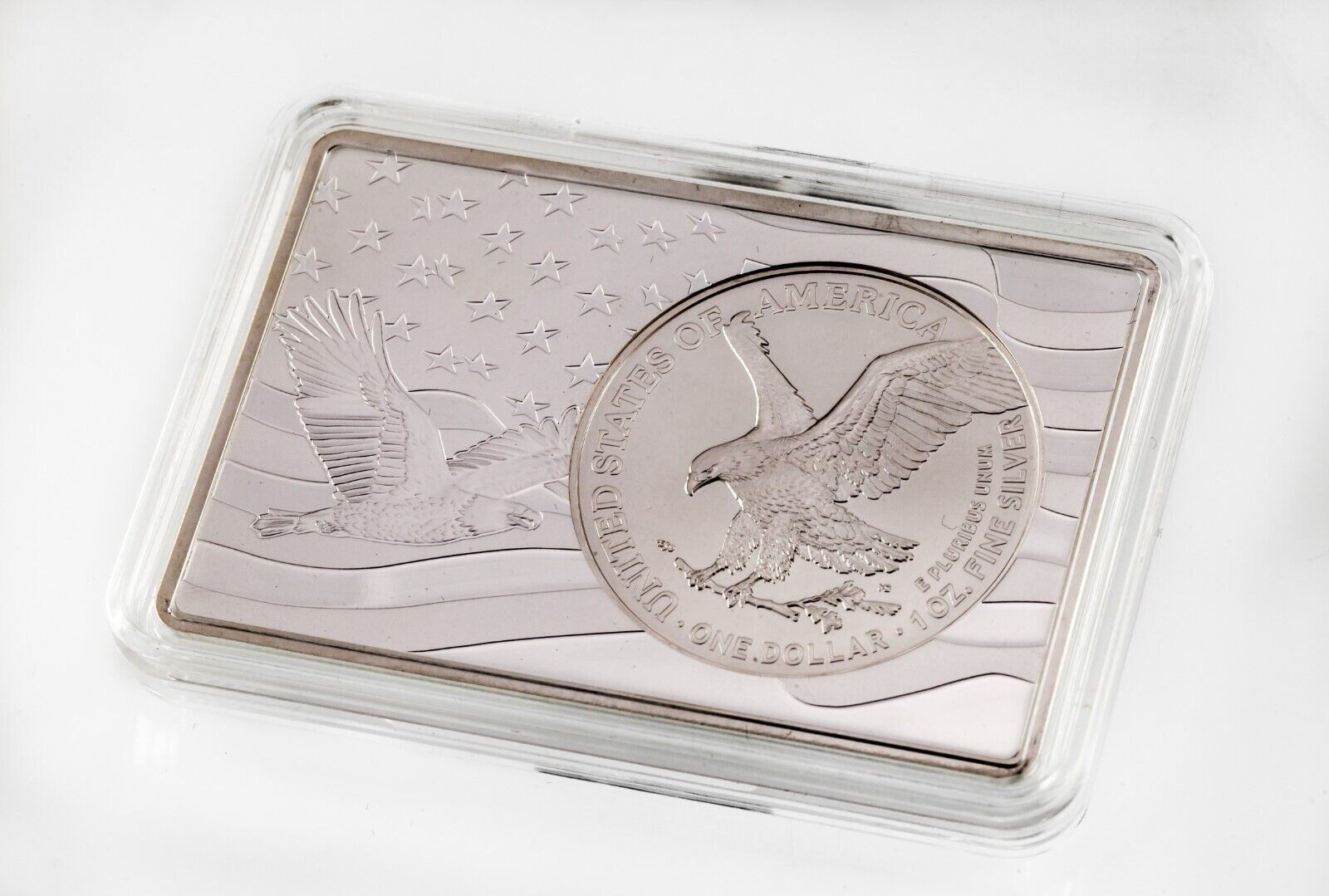 Unique 2 oz Silver Bar with perfect cutout for this 2021 Type 2 Silver eagle