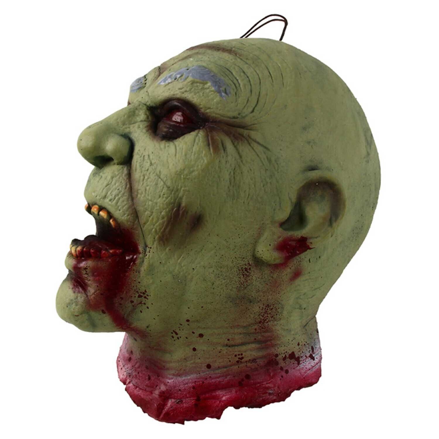 Creepy Realistic Life Size Latex Bloody GREEN Ghoul ZOMBIE SEVERED HEAD is a Poly Foam-Filled Scary Halloween Horror Prop Decoration.