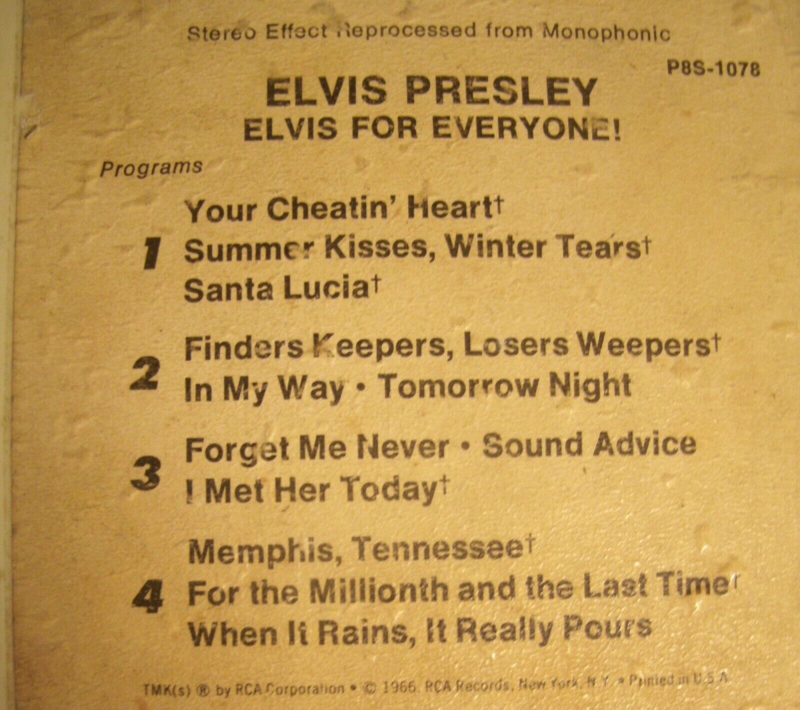 8 Track-Elvis Presley-Elvis For Everyone - Refurbished & TESTED!