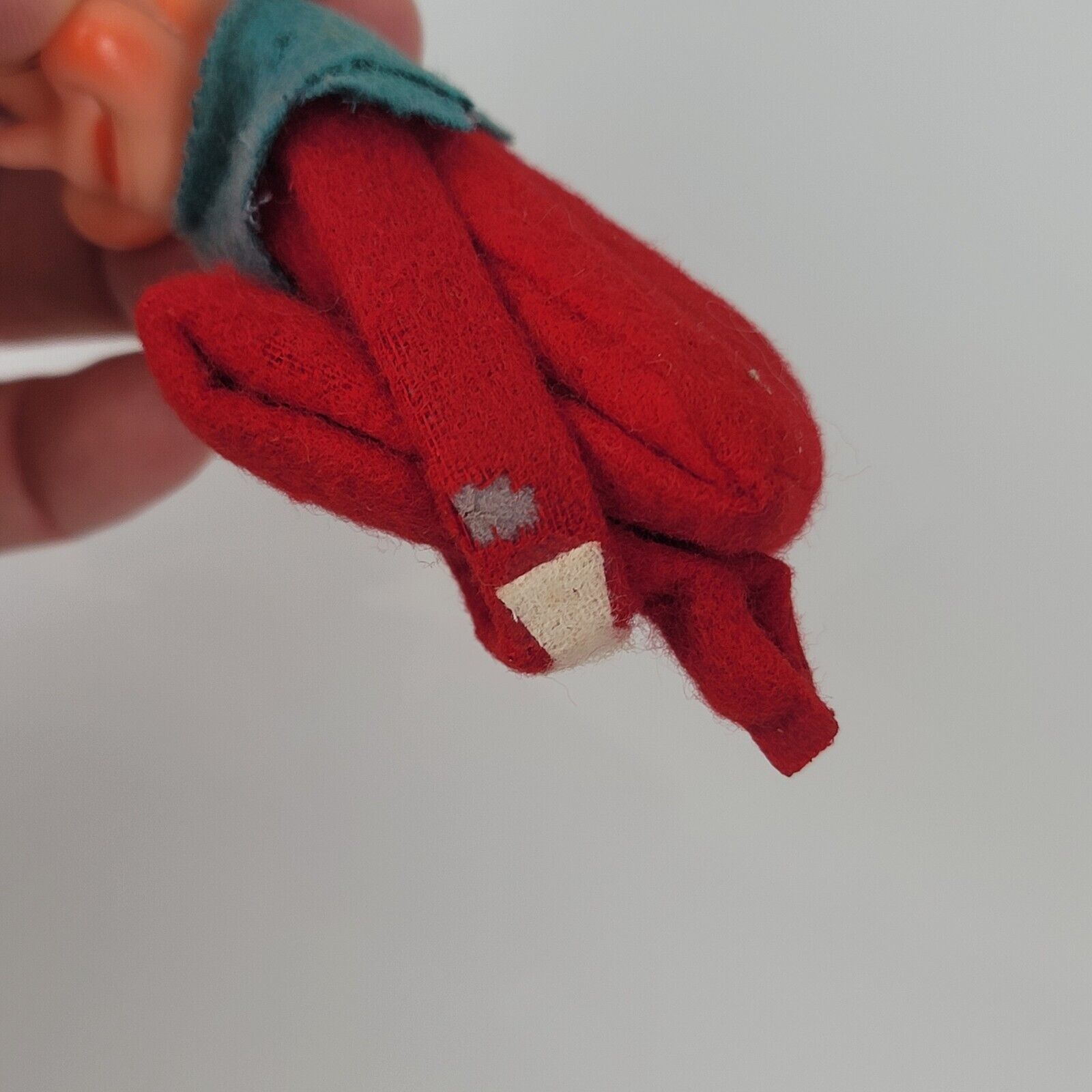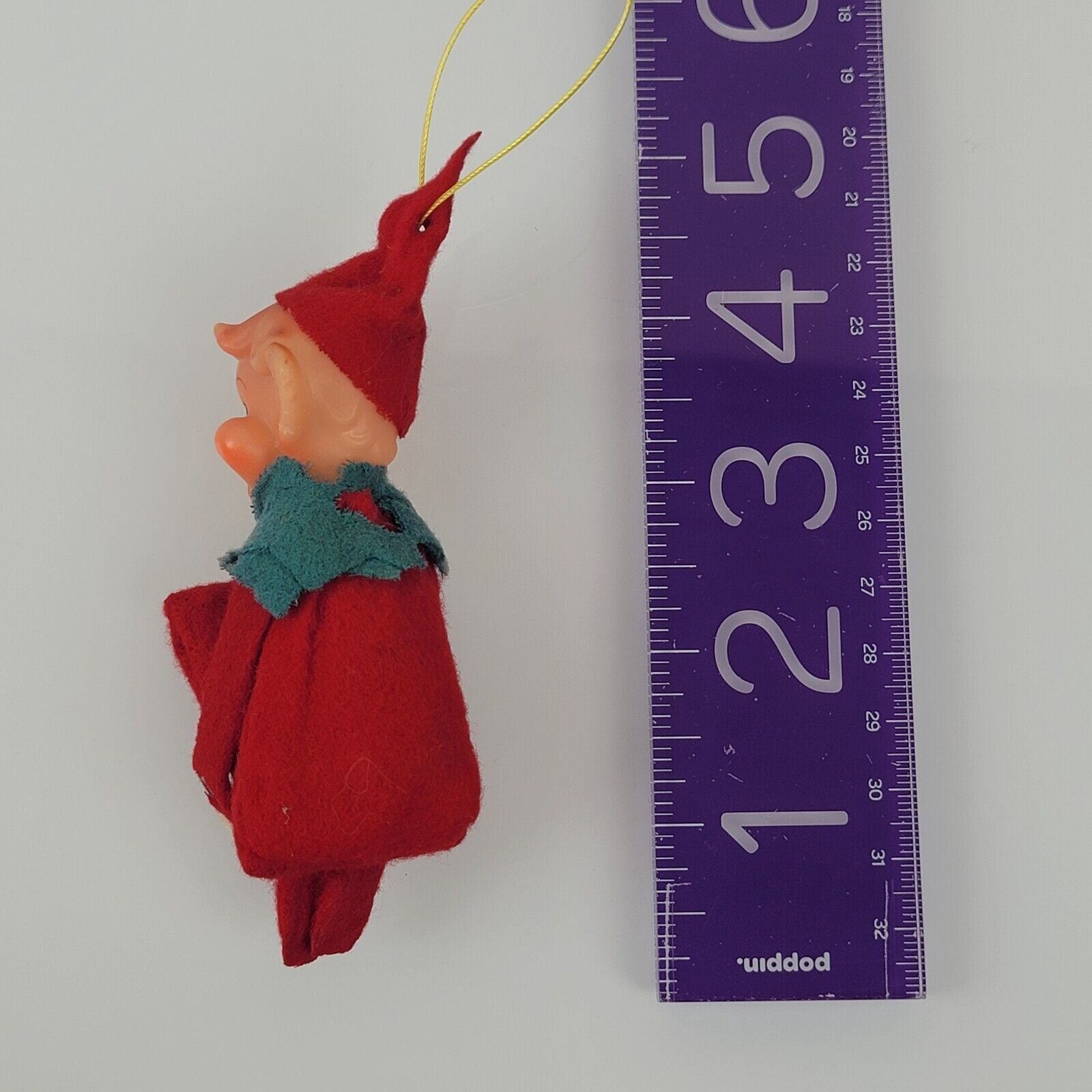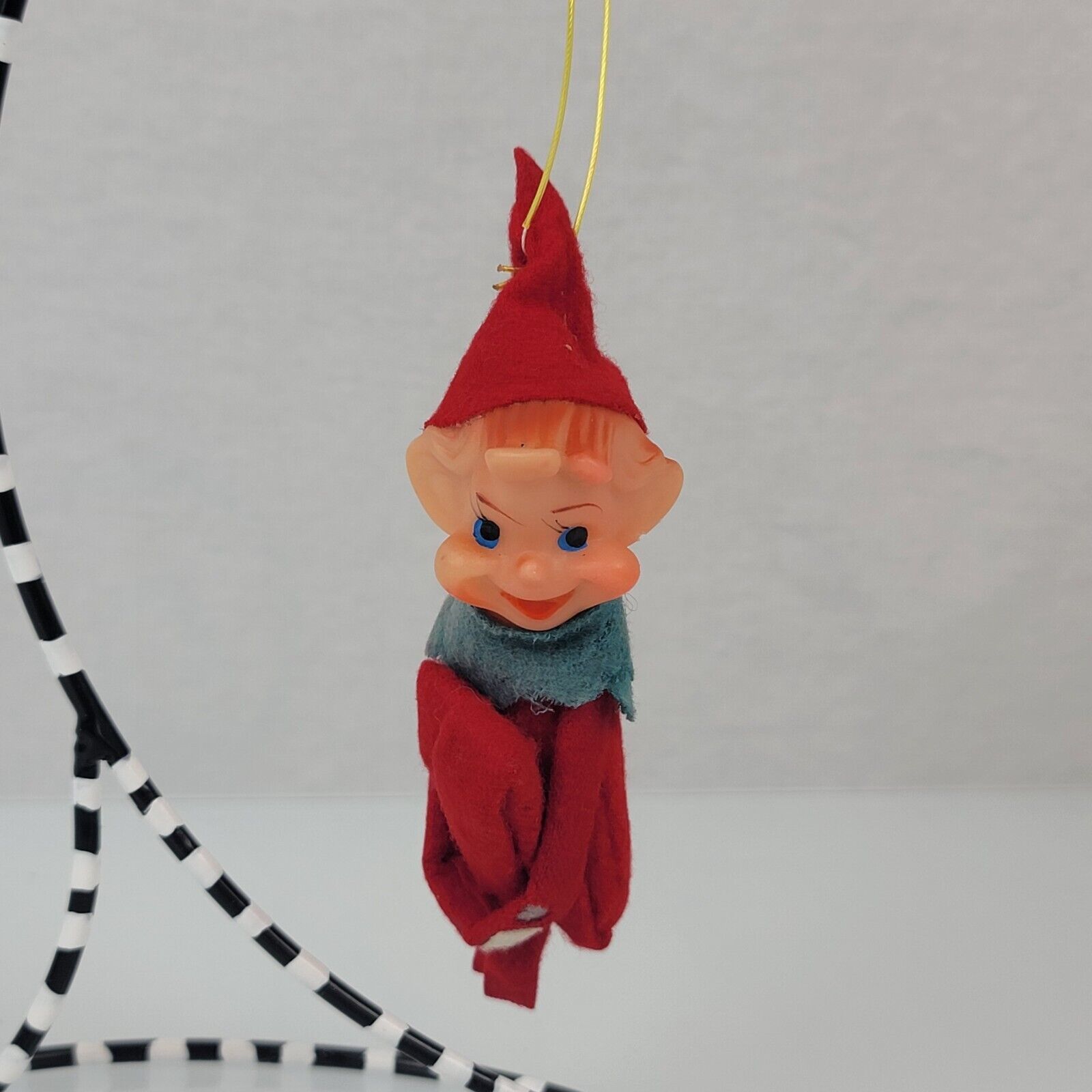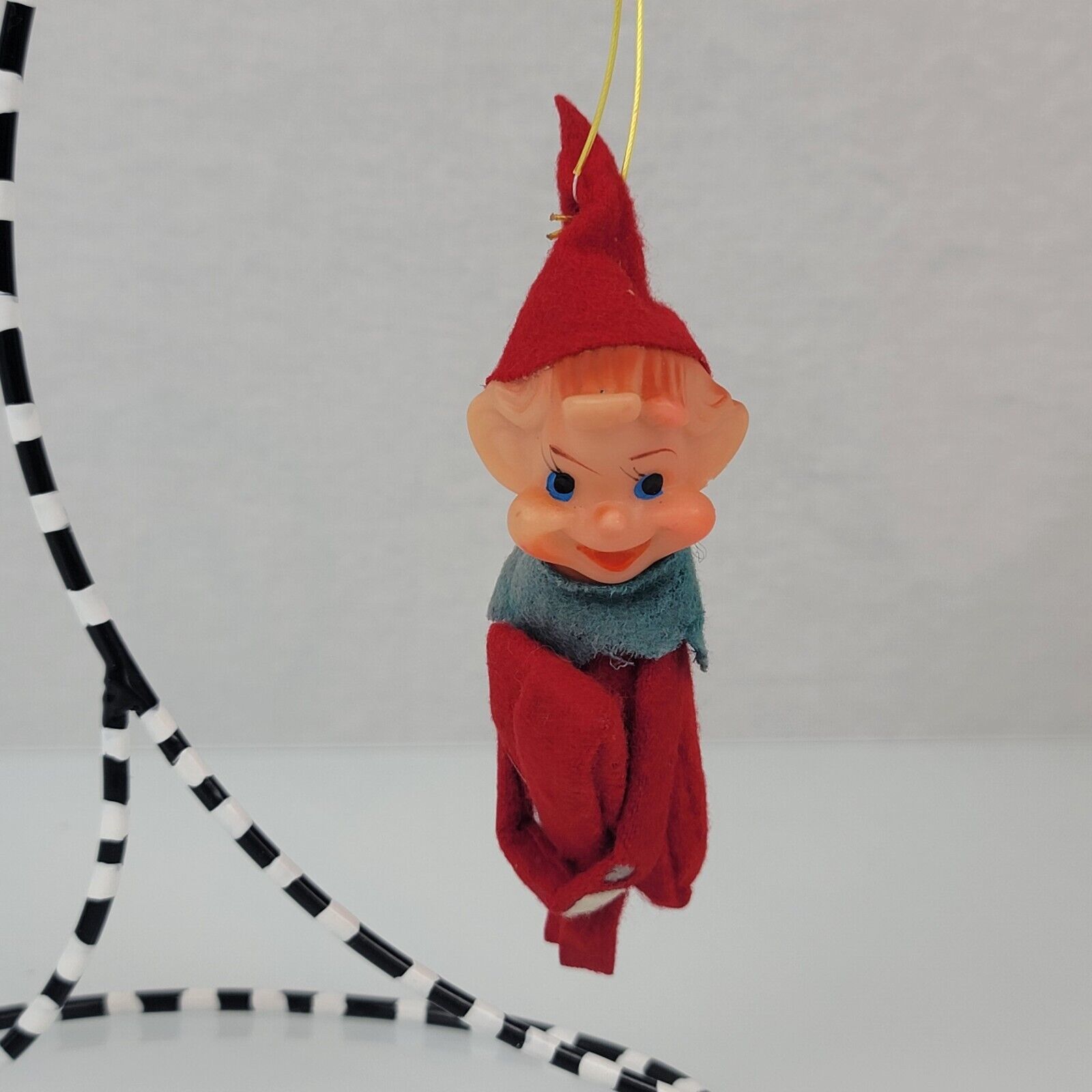 Vintage Elf Pixie Sprite Xmas Ornament Knee Hugger Felt Plastic Face 4"