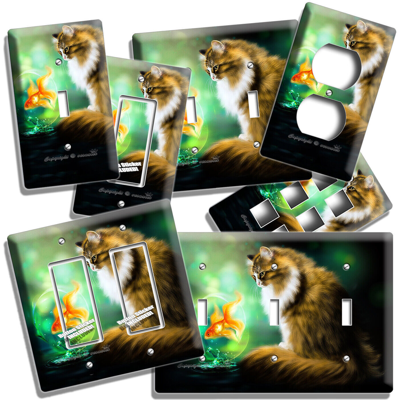 NORWEGIAN FOREST CAT GOLDFISH FANTASY LIGHT SWITCH OUTLET WALL PLATES ROOM DECOR