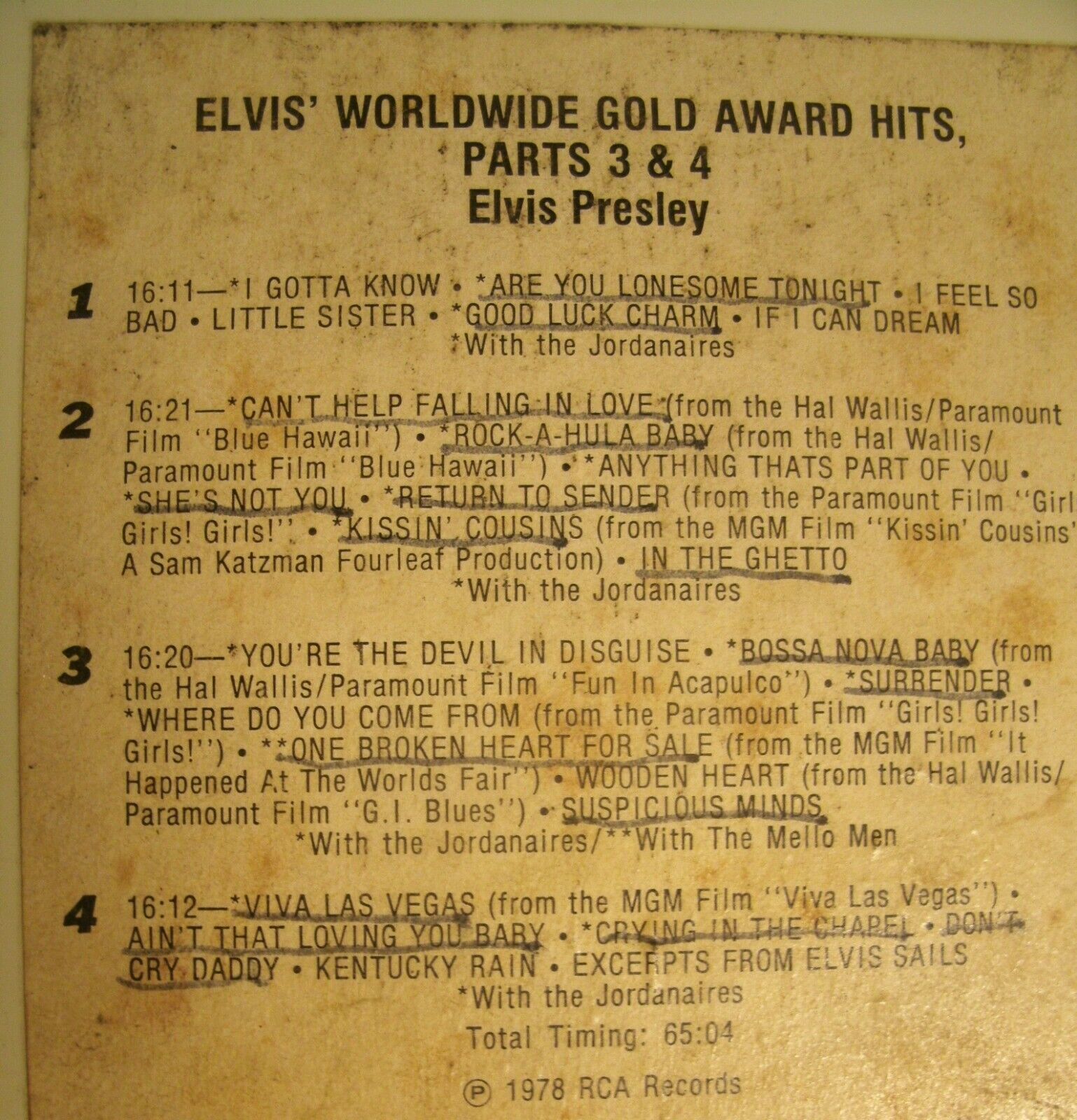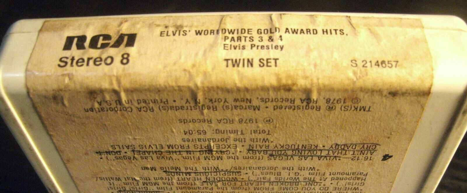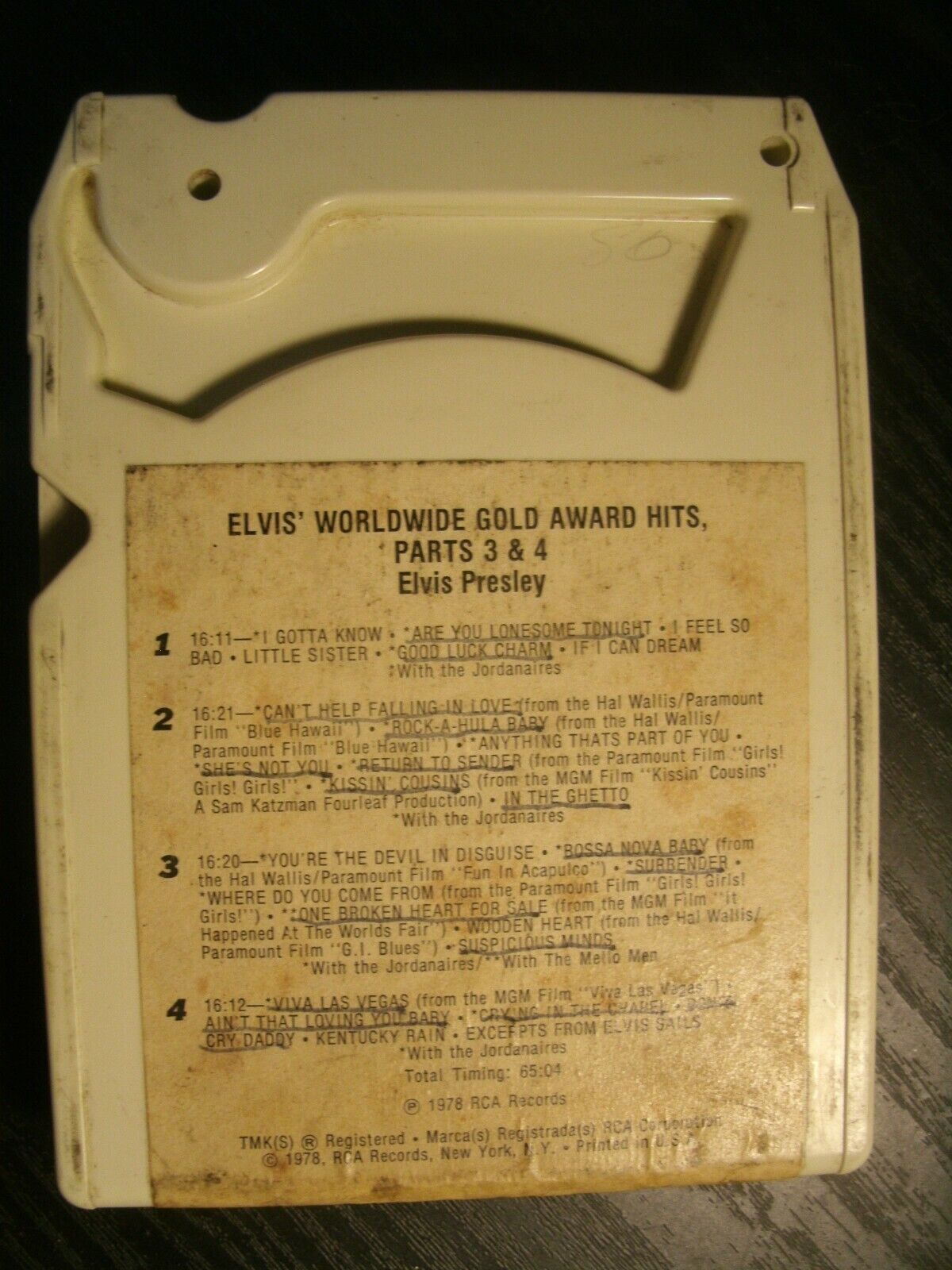 8 Track-Elvis Presley-Worldwide Gold Award Hits Parts 3 & 4-Refurbished/TESTED!