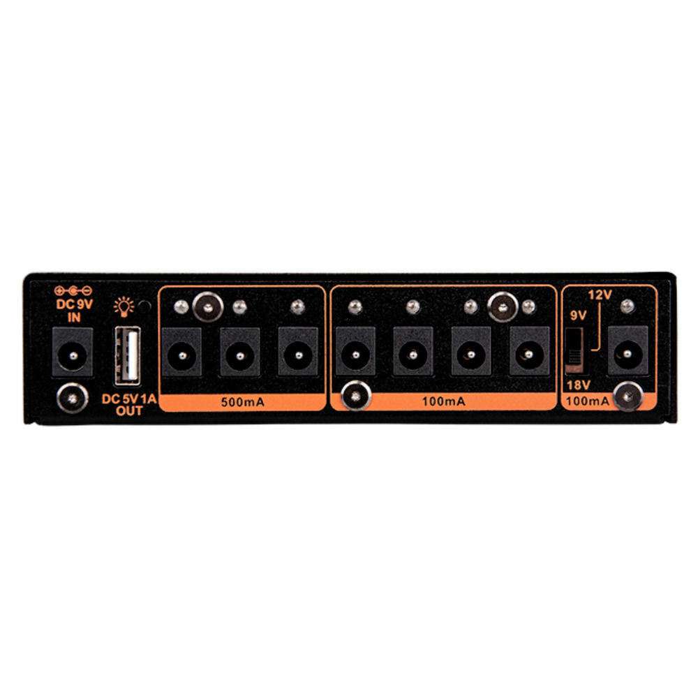 - DC Outputs 4-7 are also 9v centre negative with 100ma, suitable for the most guitar pedals at 100ma or less.