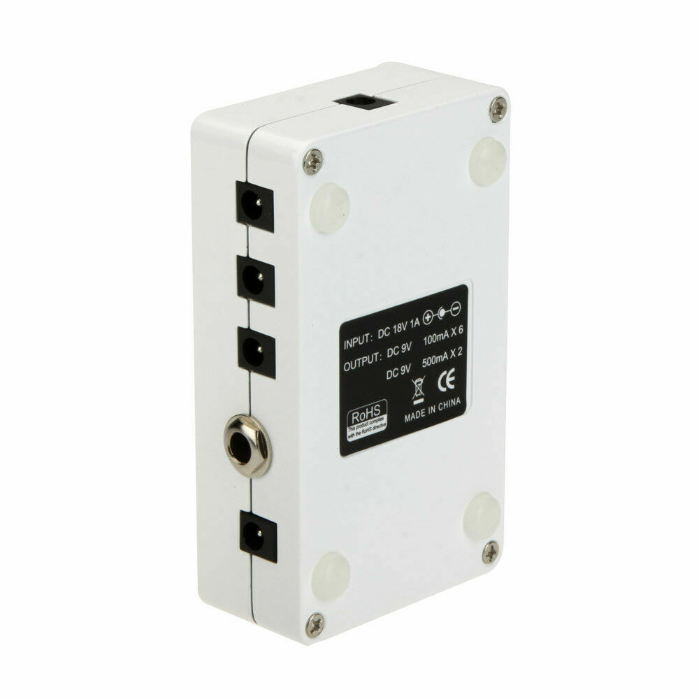 With eight isolated outputs, can power eight 9V DC pedals simultaneously - 6 at 100mA, and 2 at 500mA.