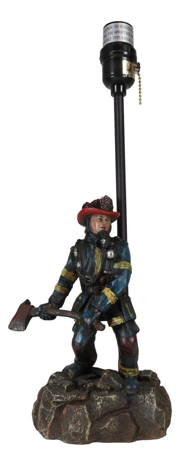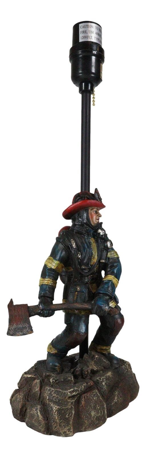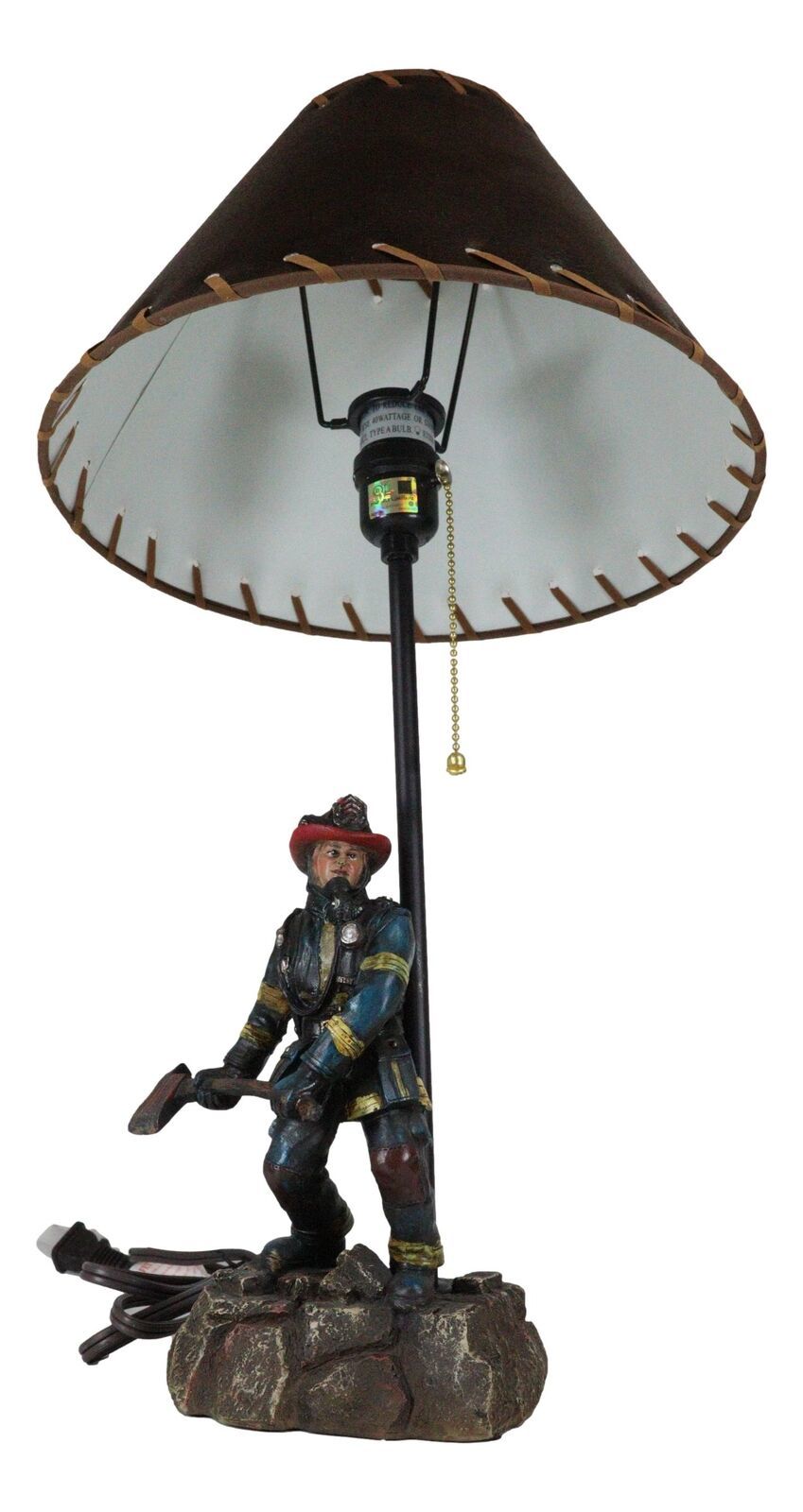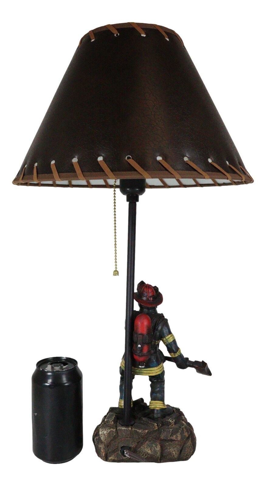 American Hero Fire Fighters Fireman In Full Gear And Axe Table Lamp With Shade