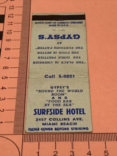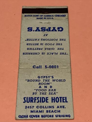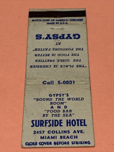 Front Strike Matchbook Cover Surfside Hotel Miami Beach, FL gmg unstruck foxing