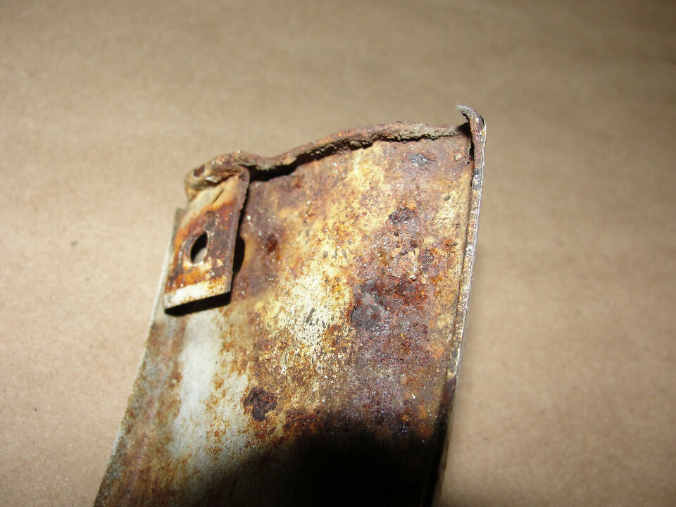 solid, has some surface rust on the back. Paint has average scratches/wear
