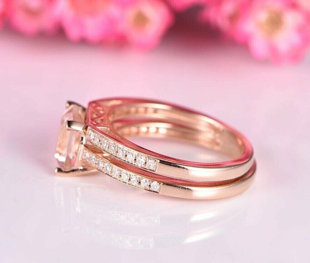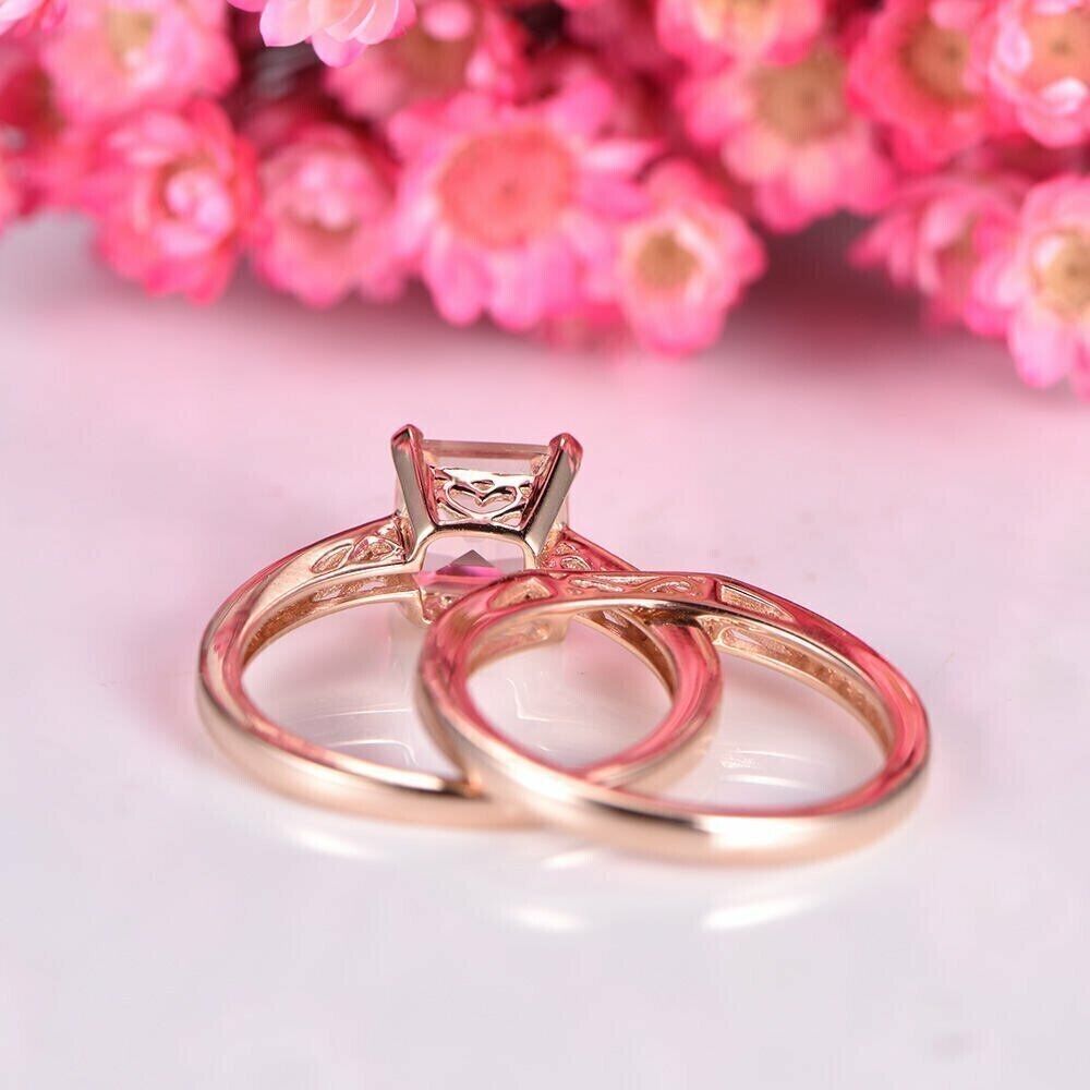 2.50Ct Princess Cut CZ Diamond Bridal Set Women Ring 14K Rose Gold Finish