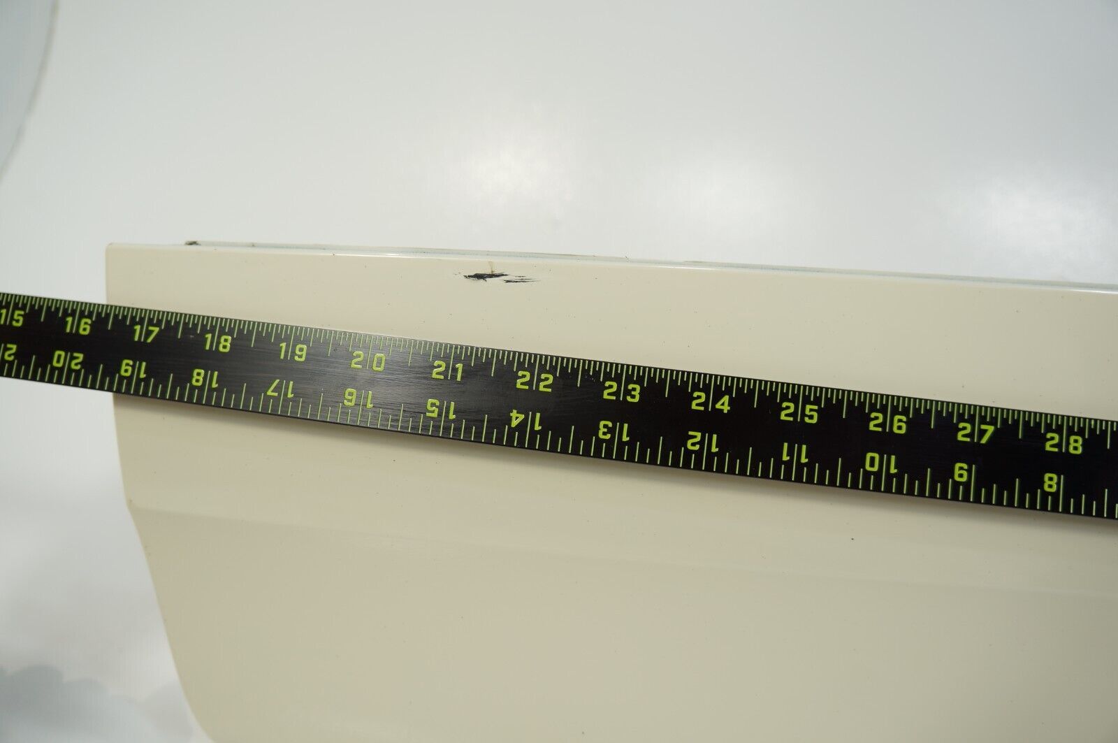 One tab is missing. Some scratches on the paint. See all photos. Requires double sided tape for installation.
