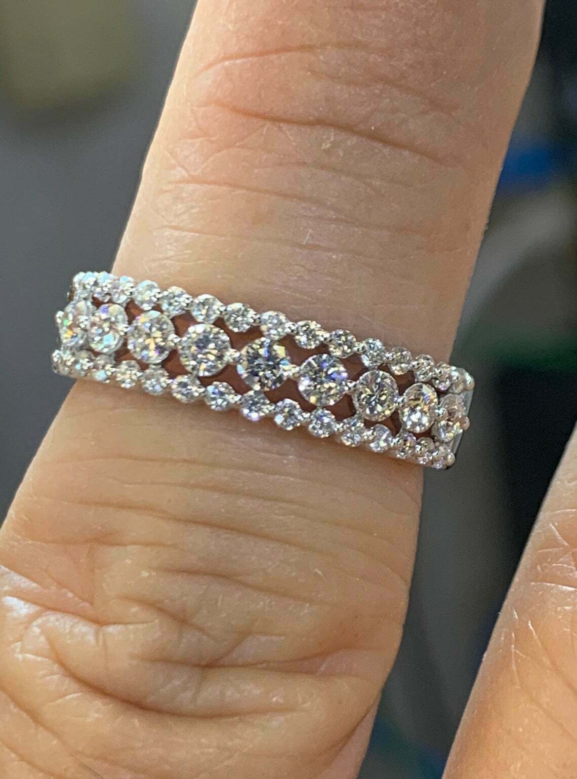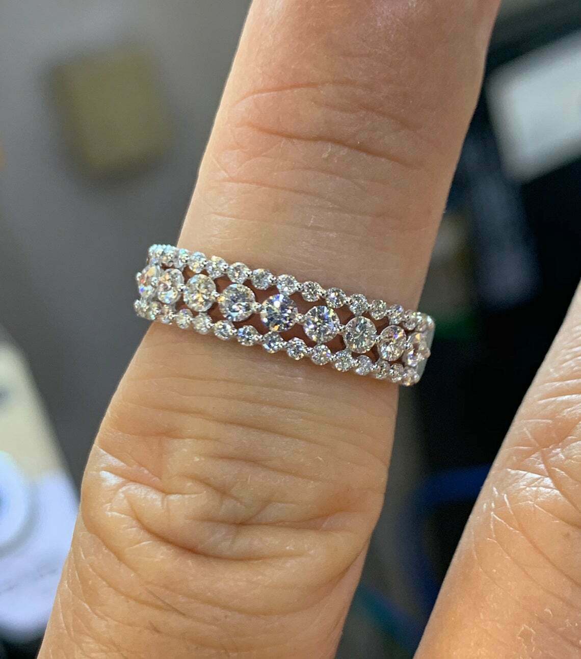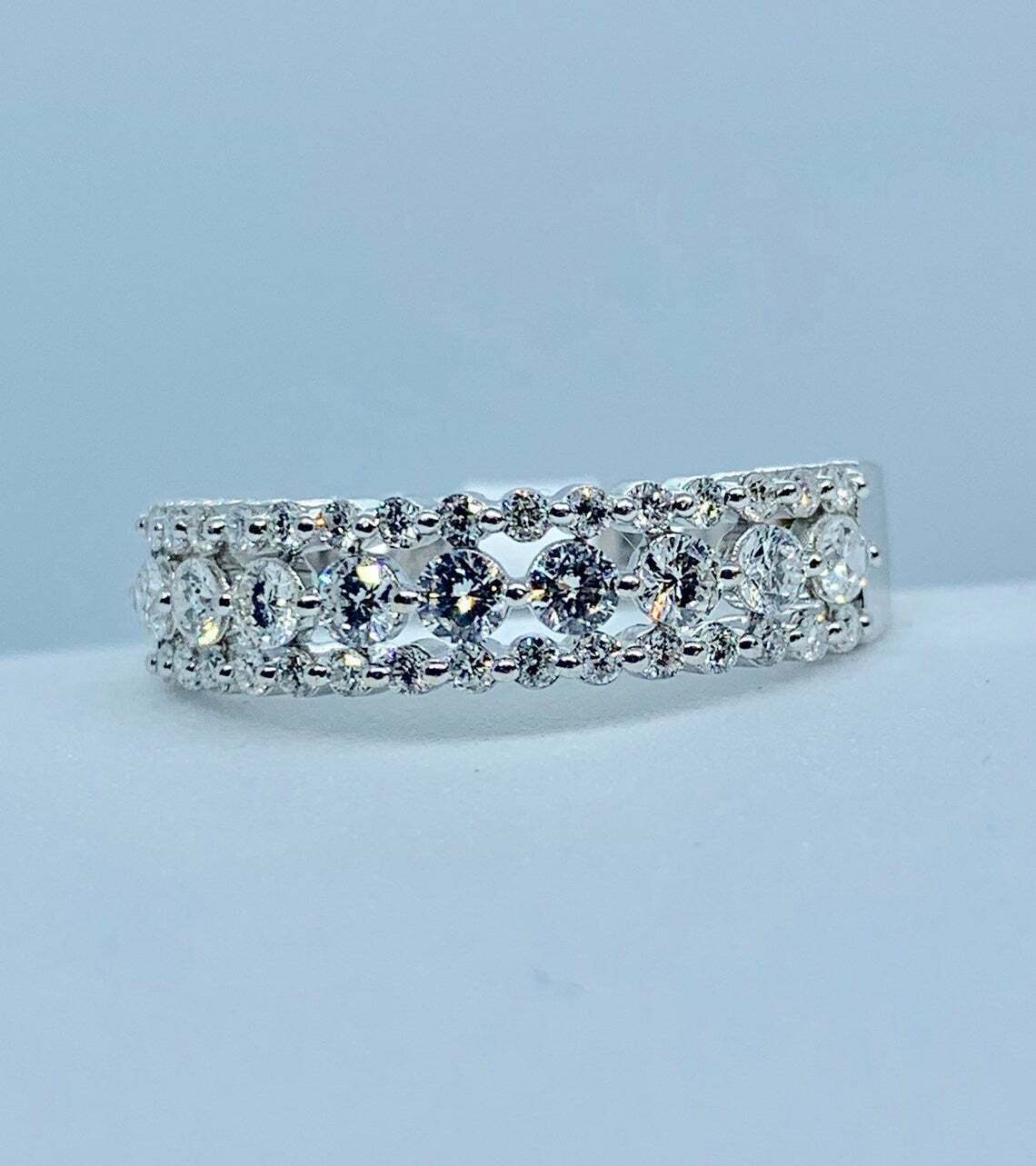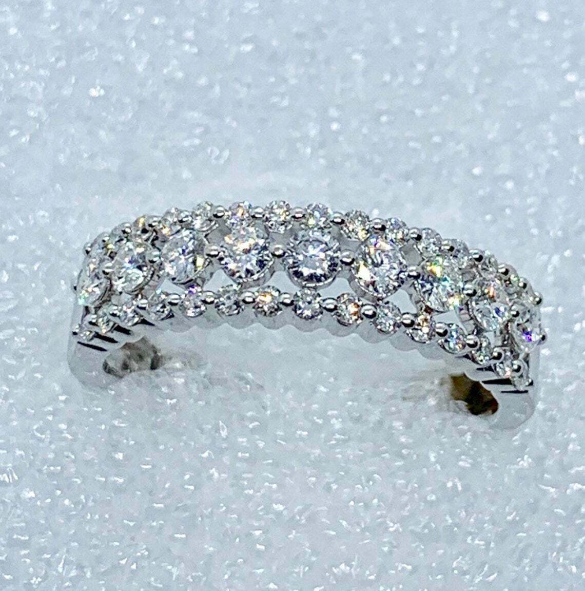 Bague Anniversaire Diamant Taille Ronde 2Ct 3 Rangées de Diamants Finition...