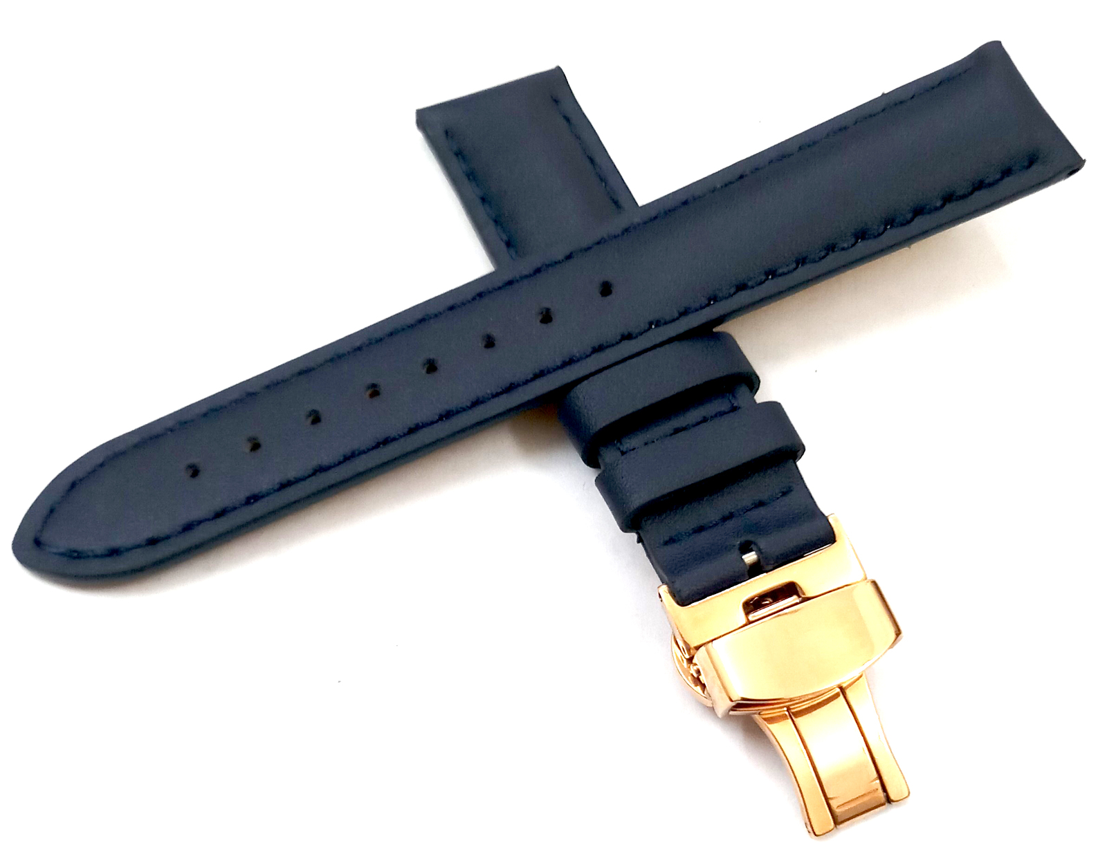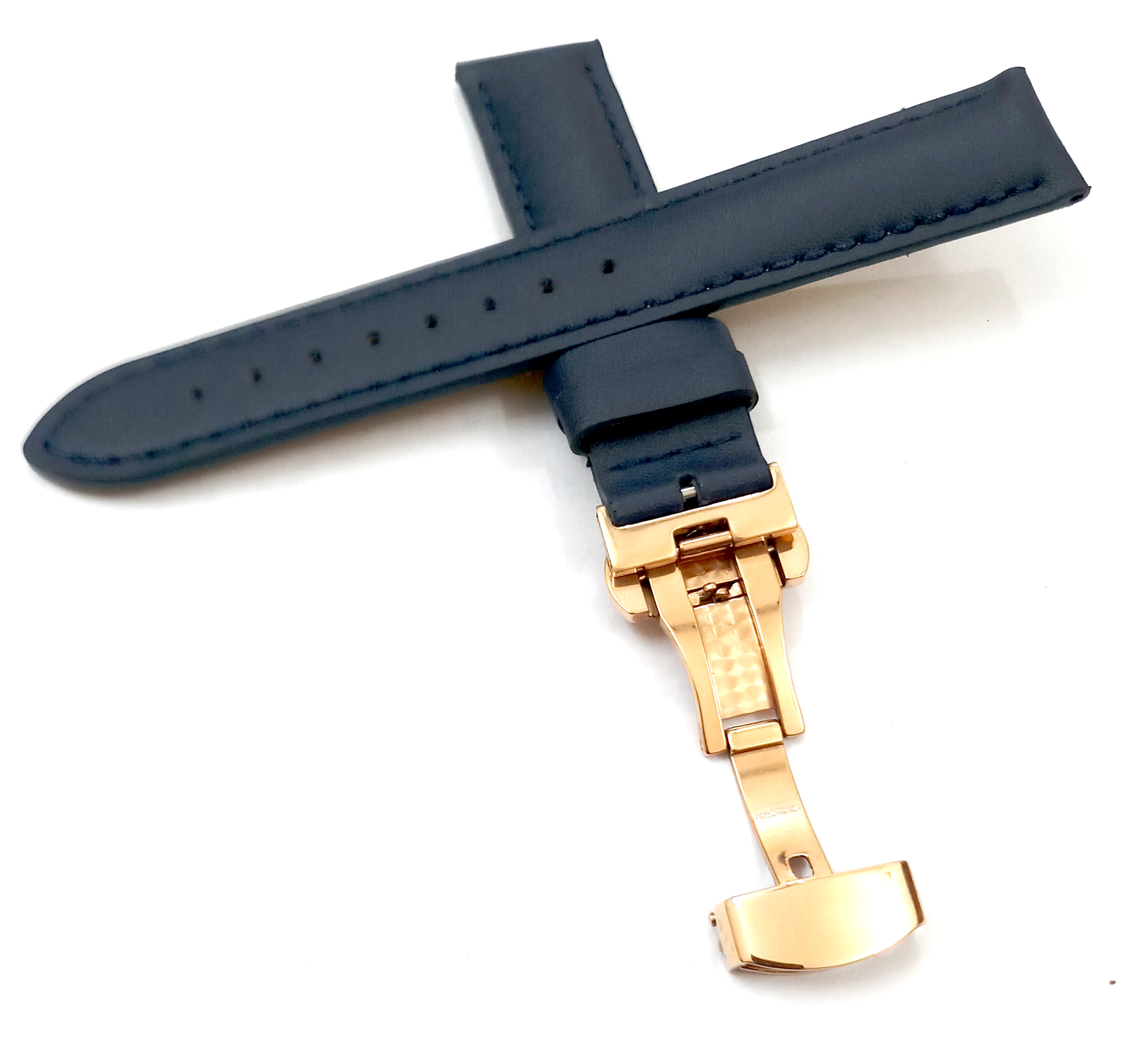 18mm 20mm 22mm 24mm Blue Watch Band Strap With Deployment Rose Buckle