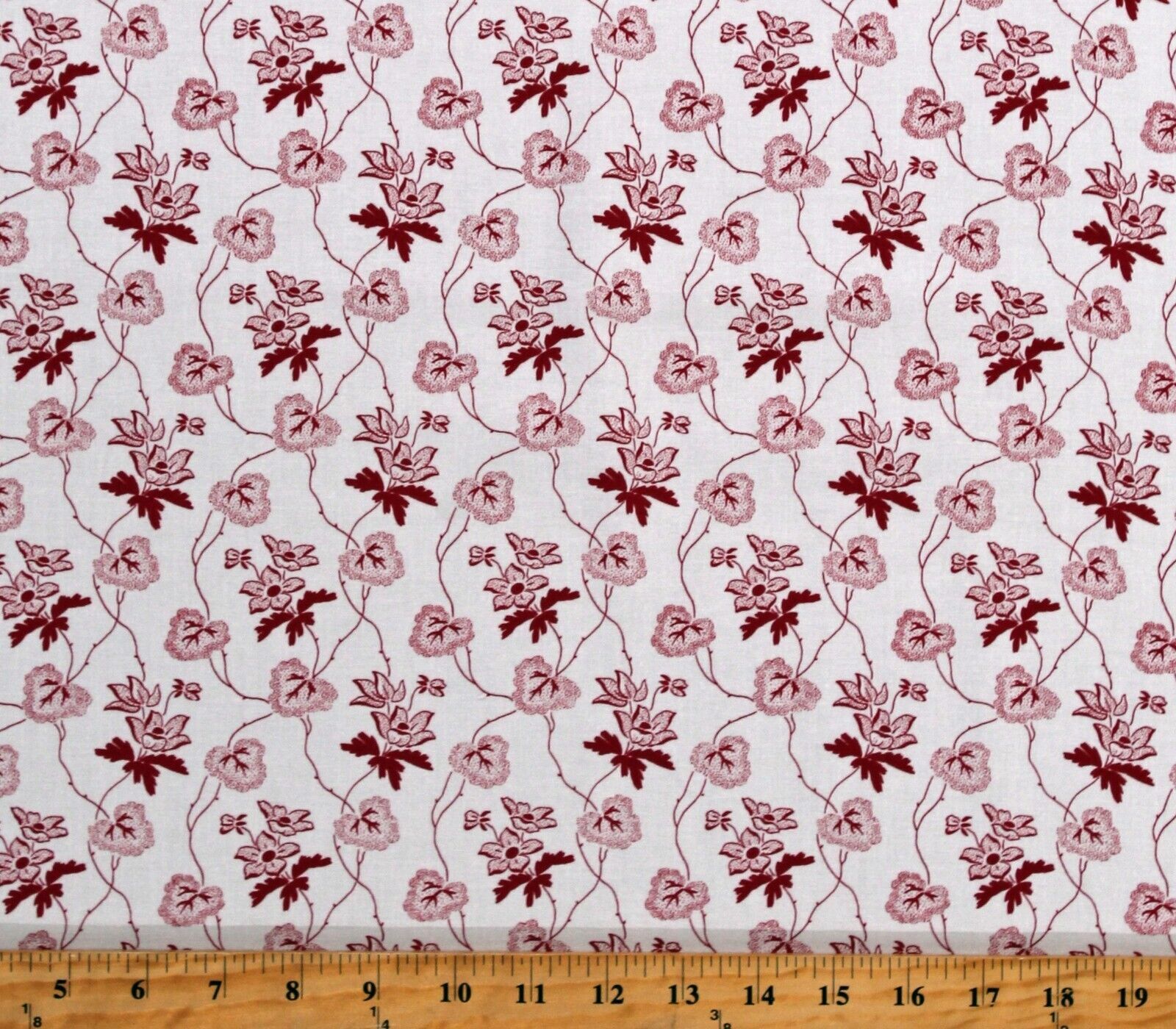 Cotton Red Trailing Vine White Civil War Scarlett Fabric Print by Yard D409.12