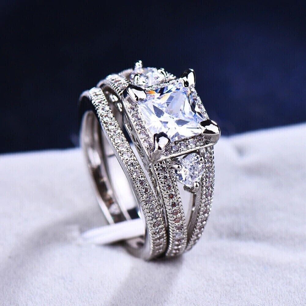 4Ct Princess Cut CZ Diamond Bridal Set Wedding Ring 14k White Gold Finish