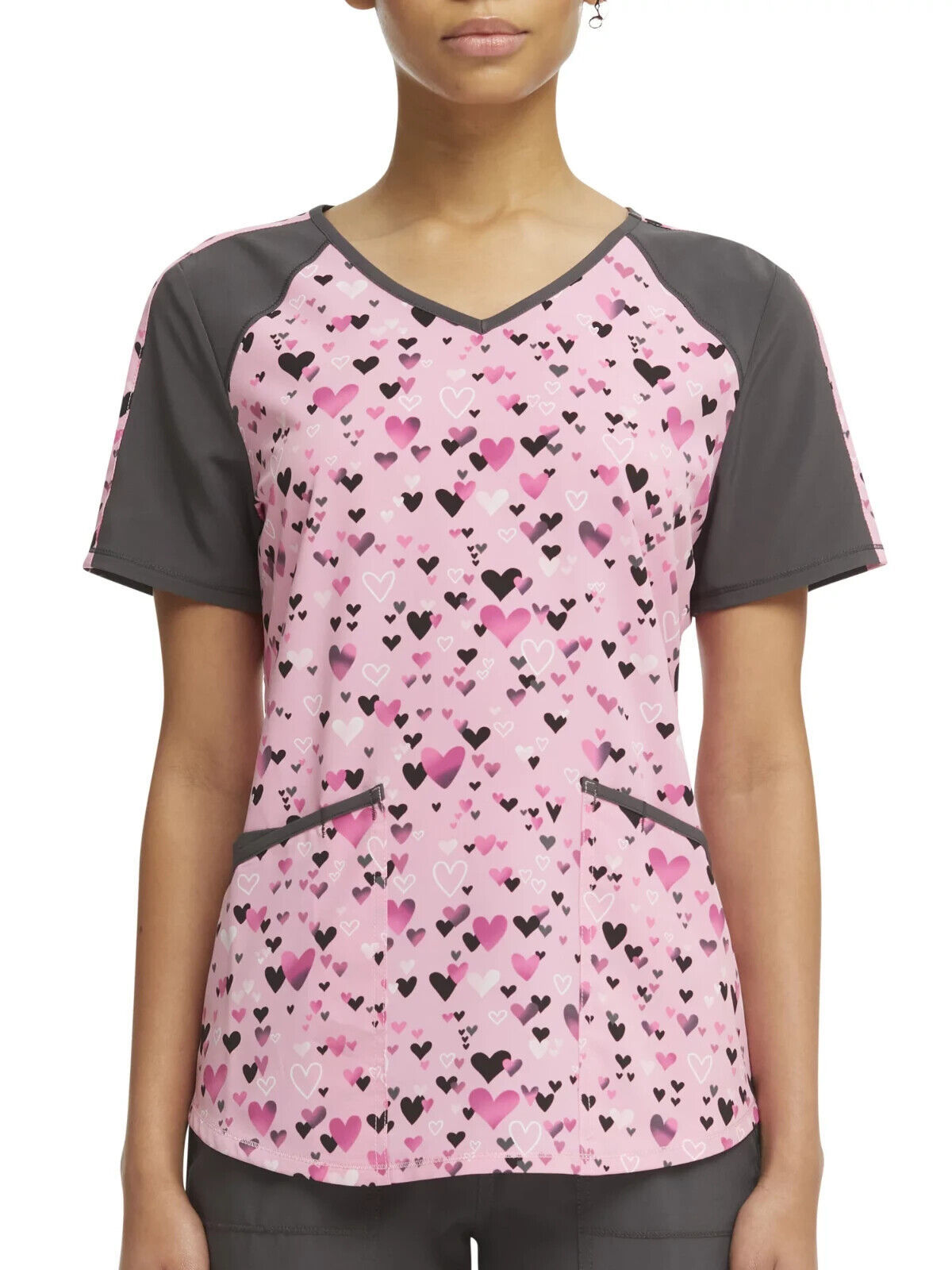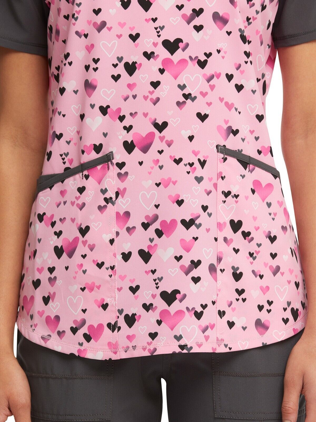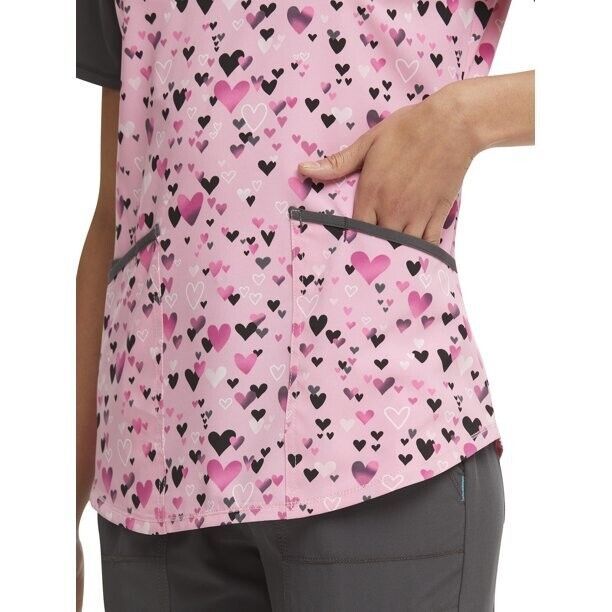 Scrubstar Women's "Sentimental Hearts" V-Neck Print Scrub Top, Size XL/XG