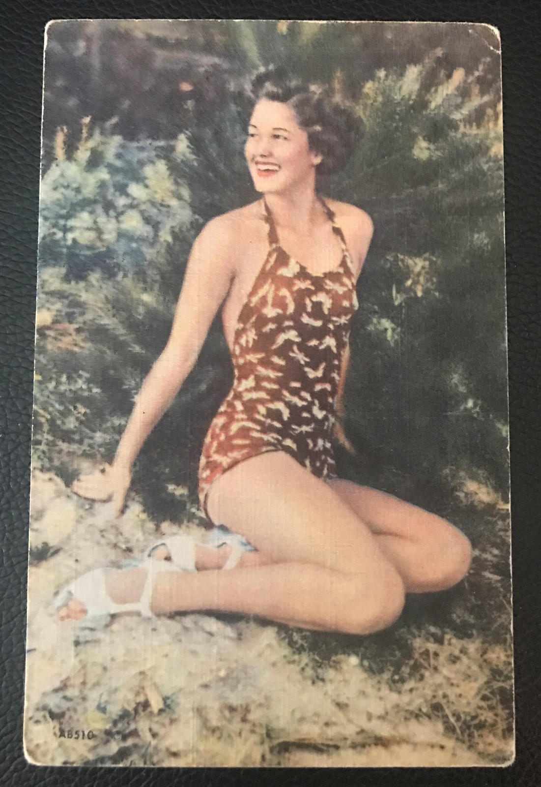 1940's Linen Postcard - Woman Posing in a and 50 similar items