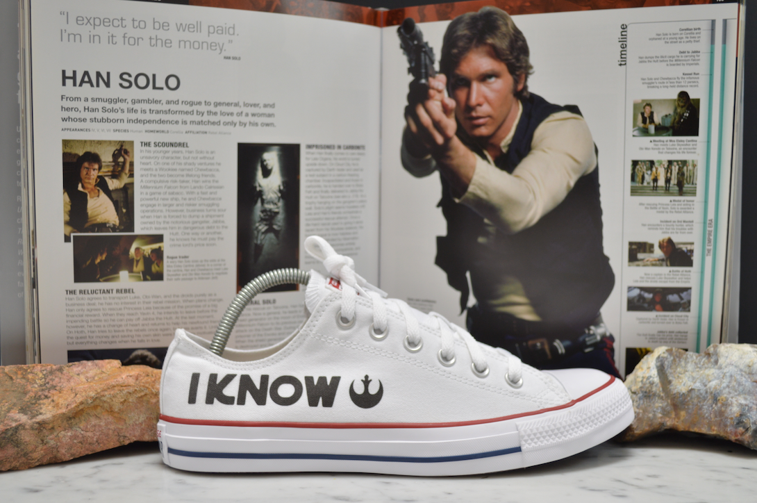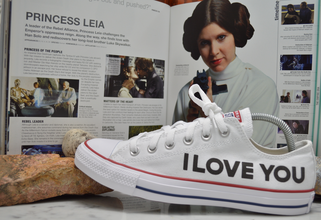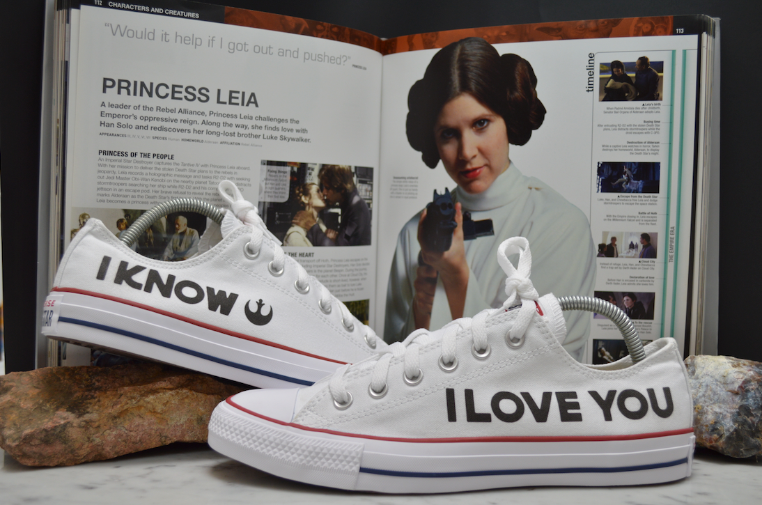 If you truly love me, buy me a pair of these custom Star Wars themed converse! Inspired by the iconic scene between Han Solo and Princess Leia. Perfect for the ultimate Star Wars fan on their big day or even if you just want to say I love you!