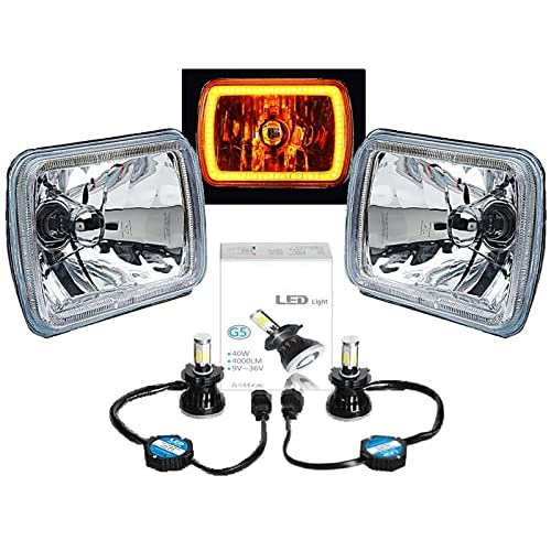 Kit - (2) Headlights And (2) Led Bulbs 7X6 Inch (5X7 inch) Crystal Glass / Metal Backside SMD Led Amber Halo Ring H4 6000K White 20W/40W High/Low Beam Led Light Bulbs Headlight Lumens: 4000 Lumens H4 Bulbs Plug Directly Into Factory 3-Prong Connection Headlights Are A Direct Fit Into The Factory Buckets Bulbs Are Removable And Replaceable Crystal Clear Glass / Metal Backside Halo Rings Are Pre Installed Into Headlight Housings Halos Are Wired Separately With A Power And Ground Wire Part Number Interchange: 6052 / H6054 DOT SAE Approved Part number Ol-134-A W/ H4 G5 Led Bulbs