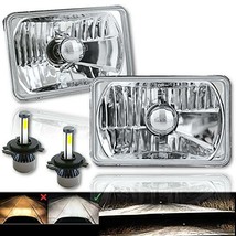 4X6 Inch Square Headlight - Pair Crystal Clear Glass Lens / Metal Backside Fits Stock Buckets Without Modification Low Beam And High Beam Function Brighter And Whiter Than Stock Lights Bulbs Are Removable And Replaceable Includes High Intensity Led Bulbs Plugs Into Factory Wiring Plugs DOT / SAE Approved