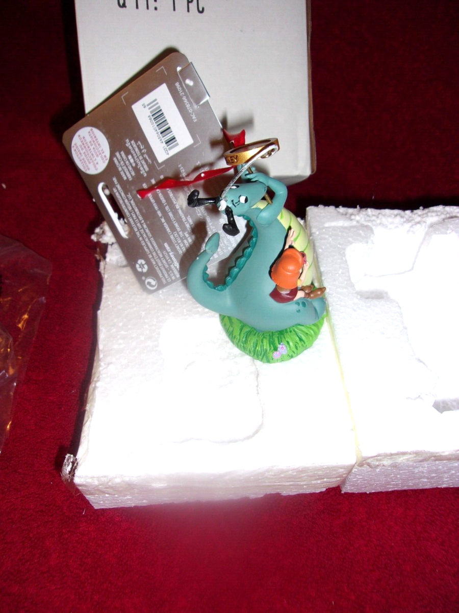 Fully sculpted ornament features The Reluctant Dragon and Boy